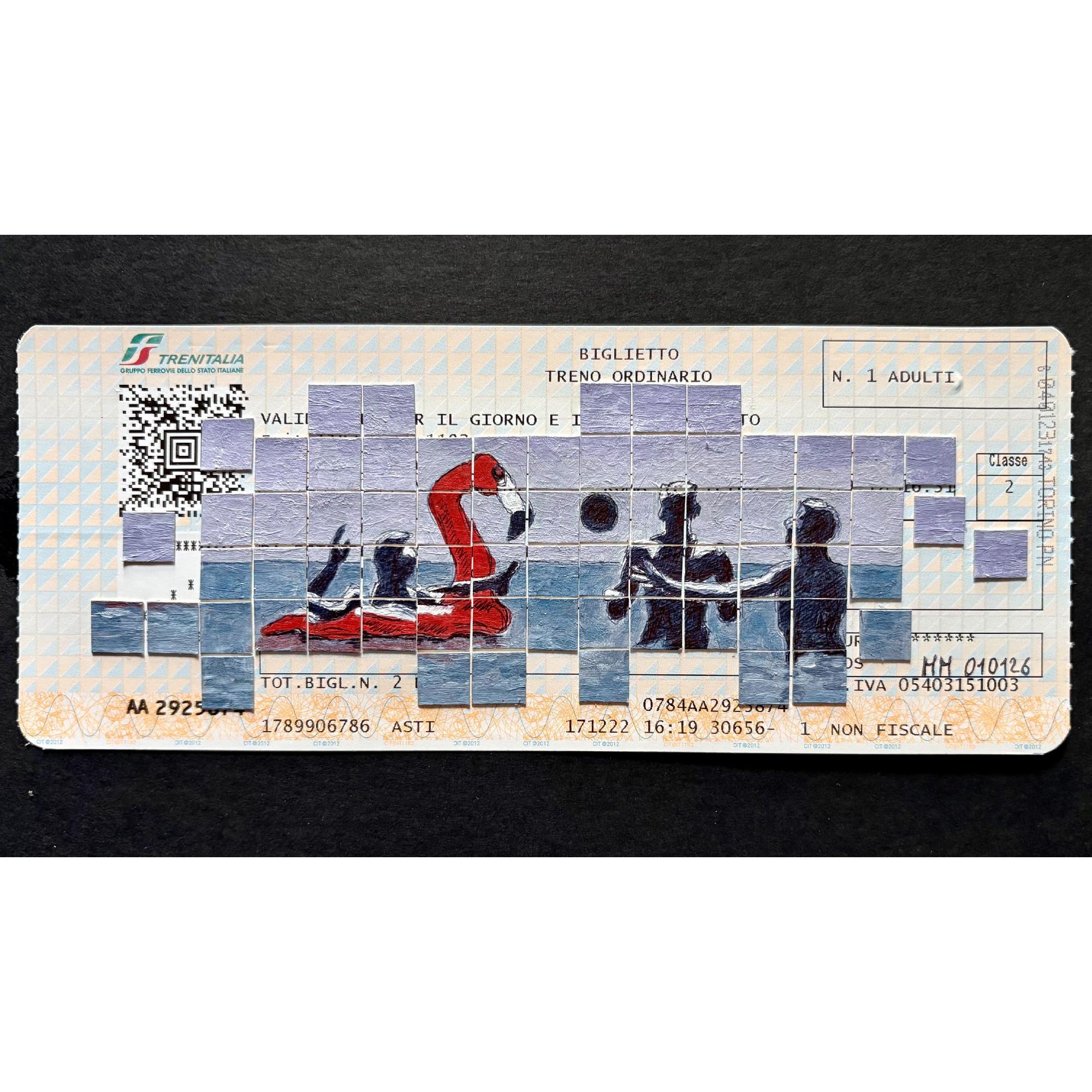 Penna, tempera e collage, Ticket ferroviario, 2026