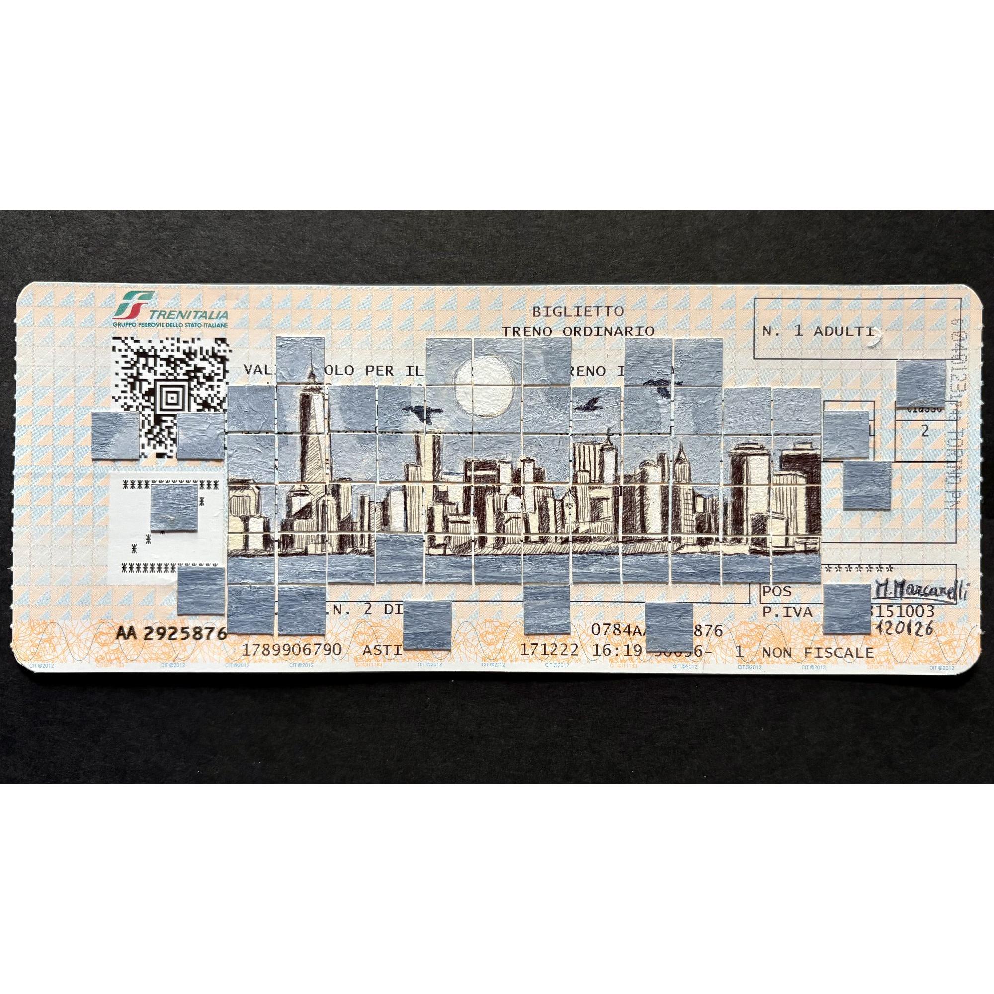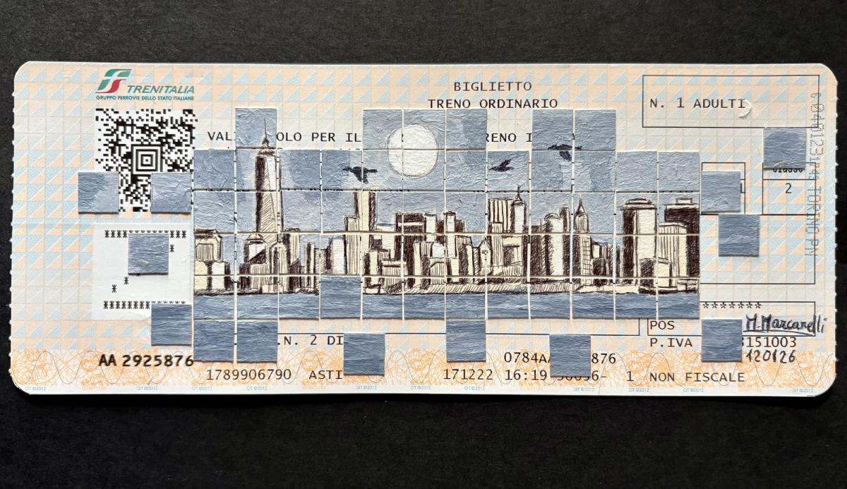 Penna, tempera e collage, Ticket ferroviario, 2026