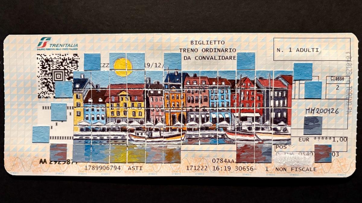 Penna, tempera e collage, Ticket ferroviario, 2026