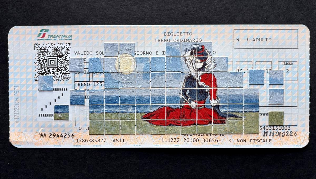Penna, tempera e collage, Ticket ferroviario, 2026