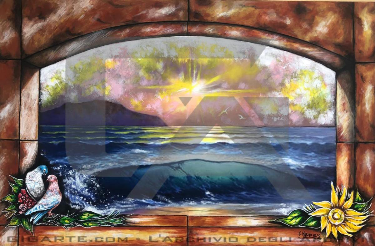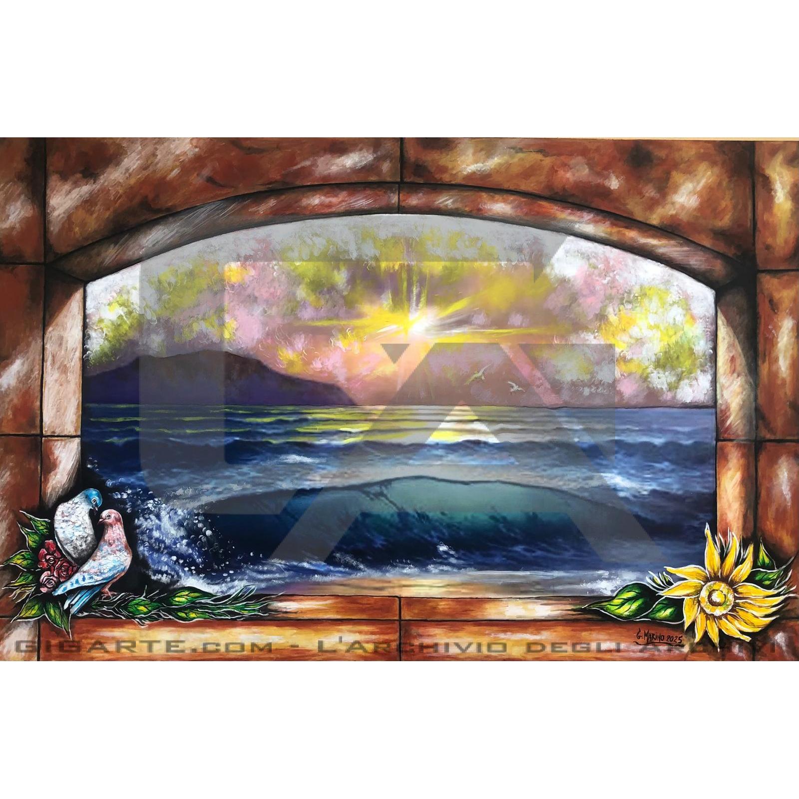 Opera : **GLI INNAMORATI ,IL MARE ,I GIRASOLI**TROMPE-OEIL in Tavola