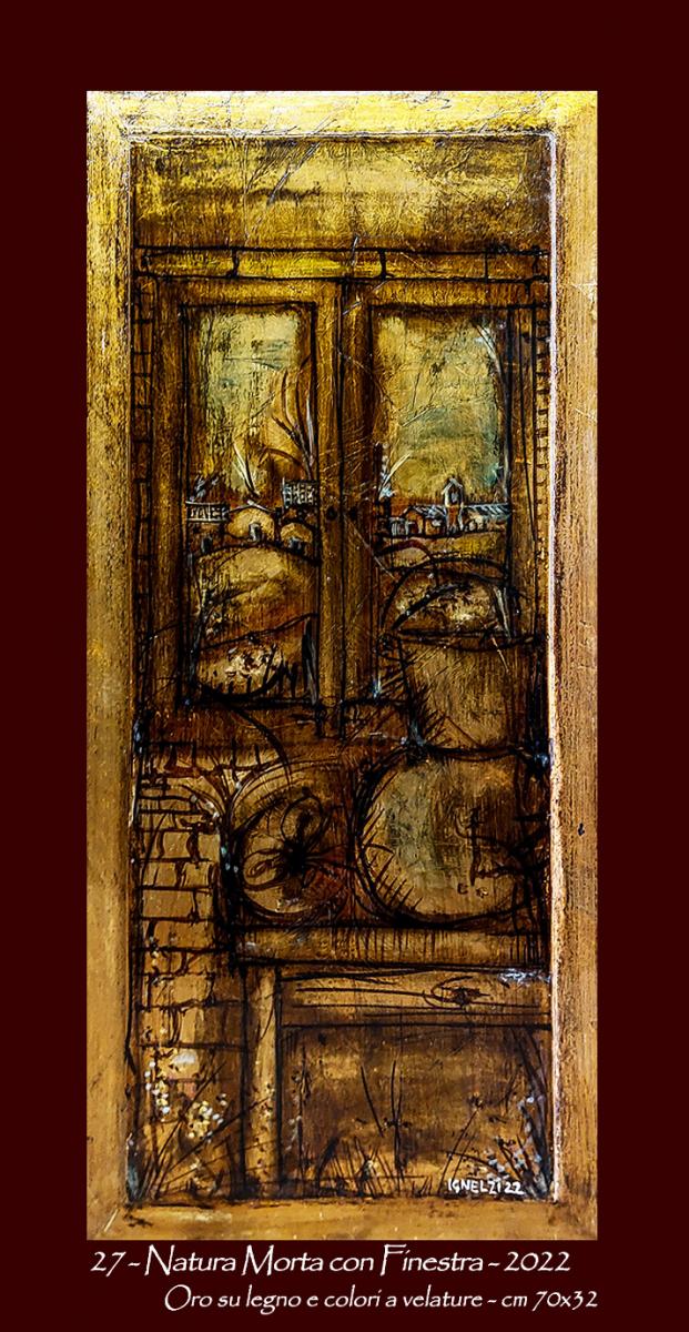 27 - Natura Morta con Finestra - 2022 - Oro su legno antico e colori a velature - cm 70x32