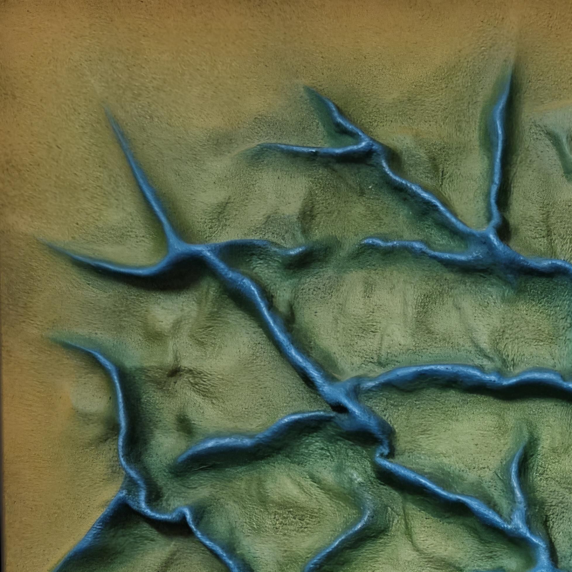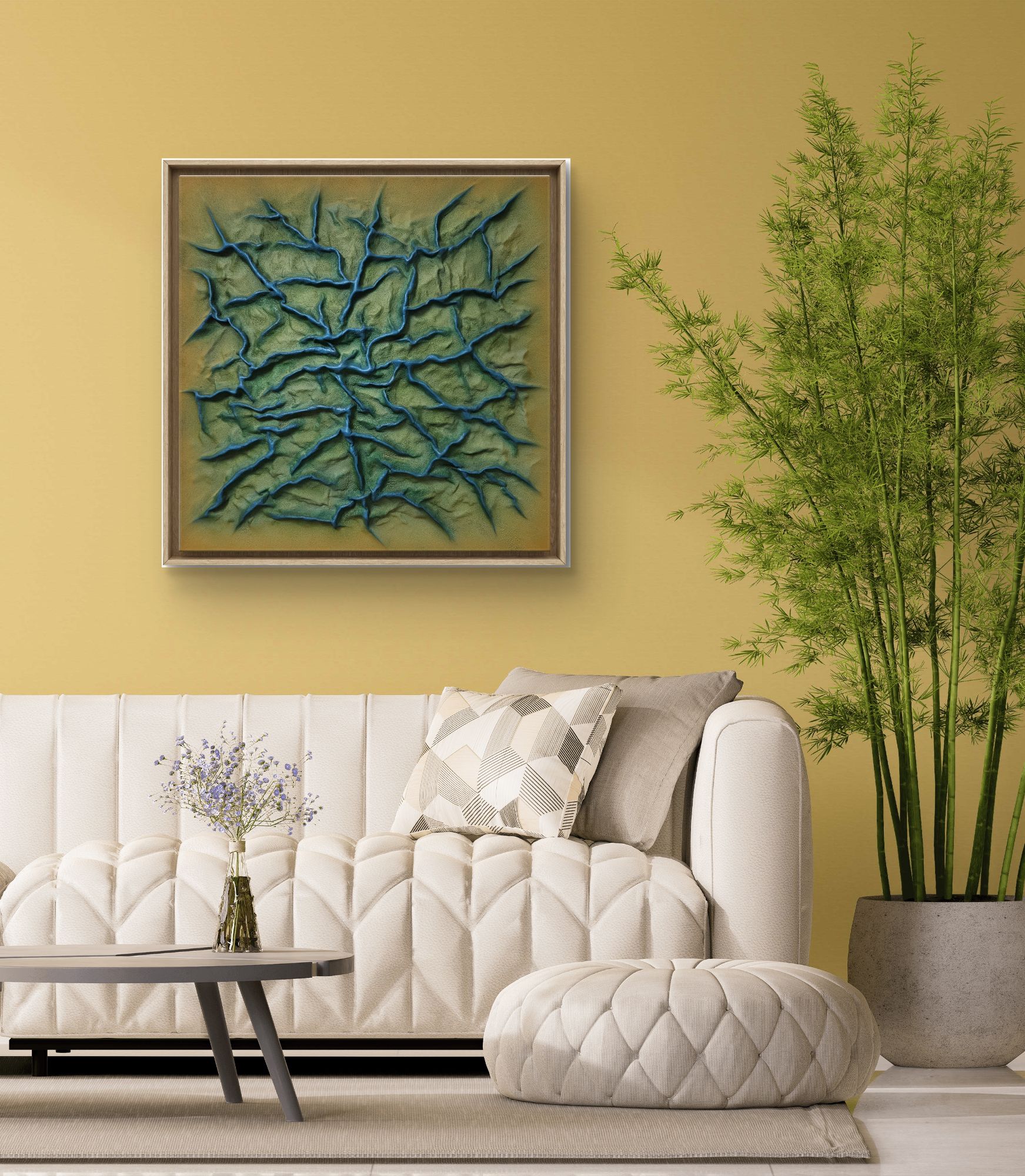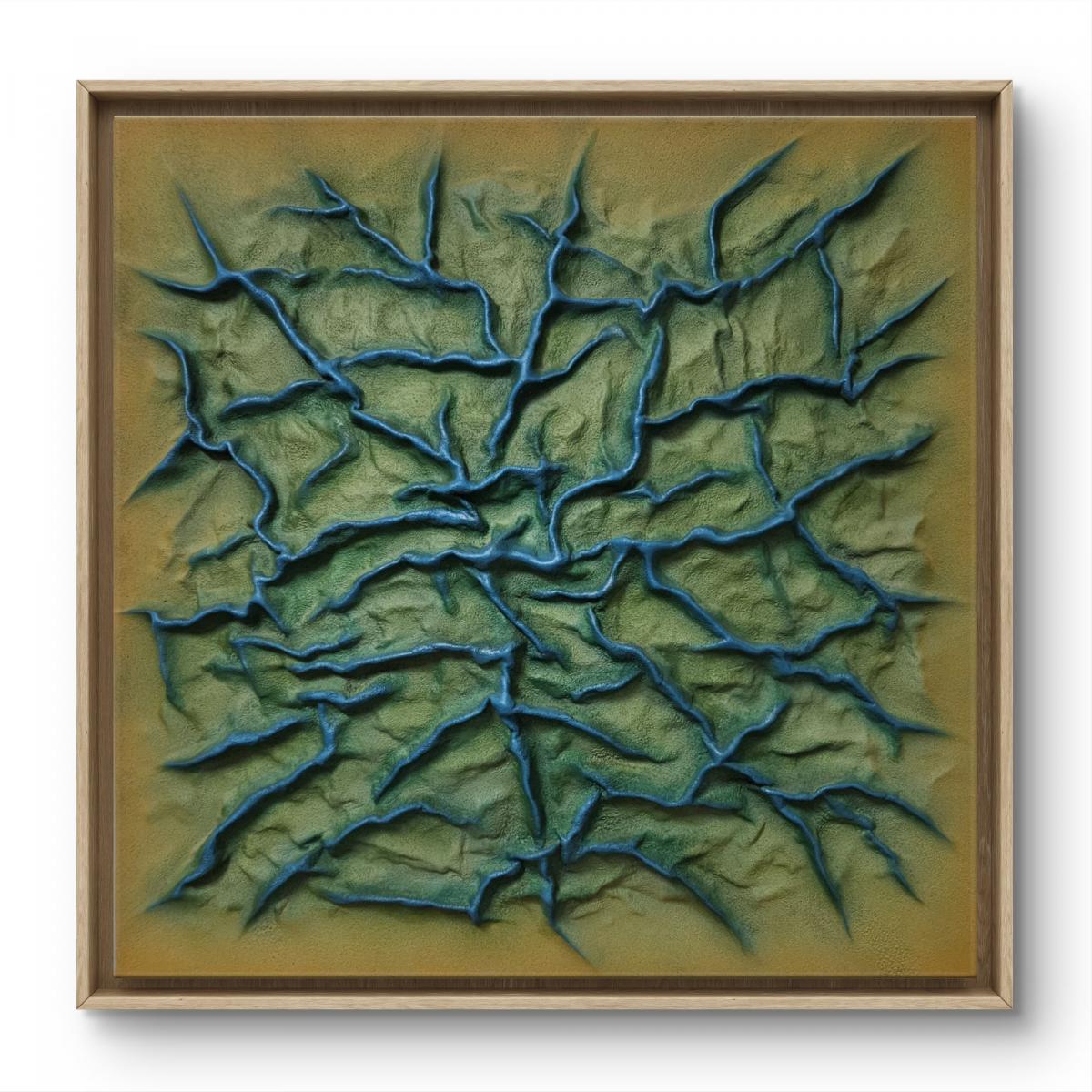 L'opera è bombata centralmente a rappresentare la tela come un essere pulsante con le sue connessioni neurali.