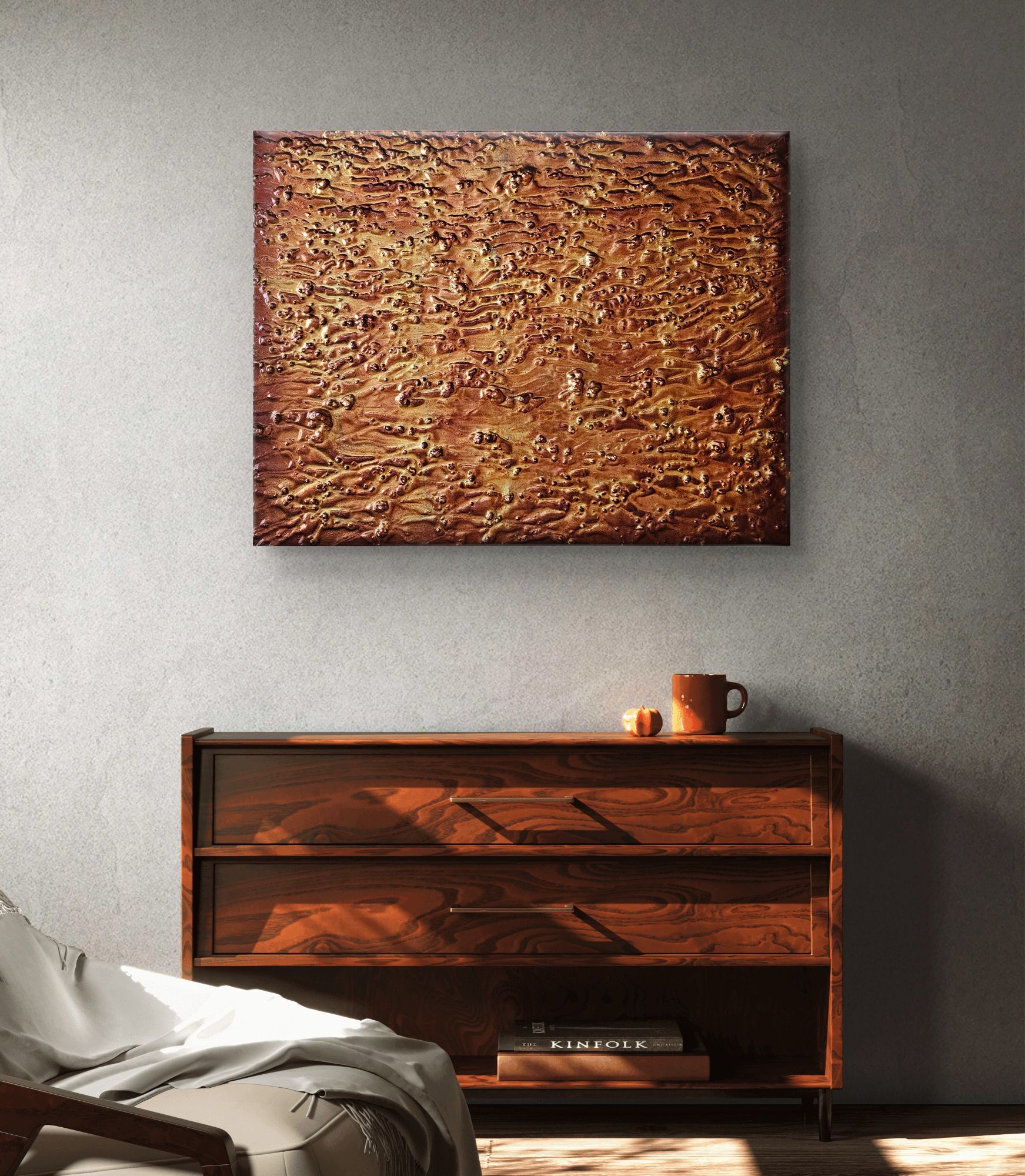L'opera invita l'osservatore a esplorare la ricchezza della sua superficie .