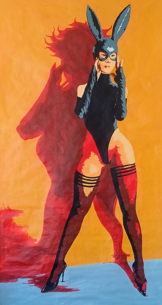 Il dittico indaga la rappresentazione del femminile attraverso una doppia figura speculare, simile nella postura ma dissonante nell’apparato simbolico dell’abbigliamento. L’intervento della luce — elemento apparentemente rivelatore — produce un cortocircuito percettivo: le ombre generate non appartengono ai corpi da cui sembrano scaturire. Le due donne paiono essersi scambiate le rispettive proiezioni, generando uno slittamento identitario che disorienta lo sguardo e ne mette in crisi la logica interpretativa.