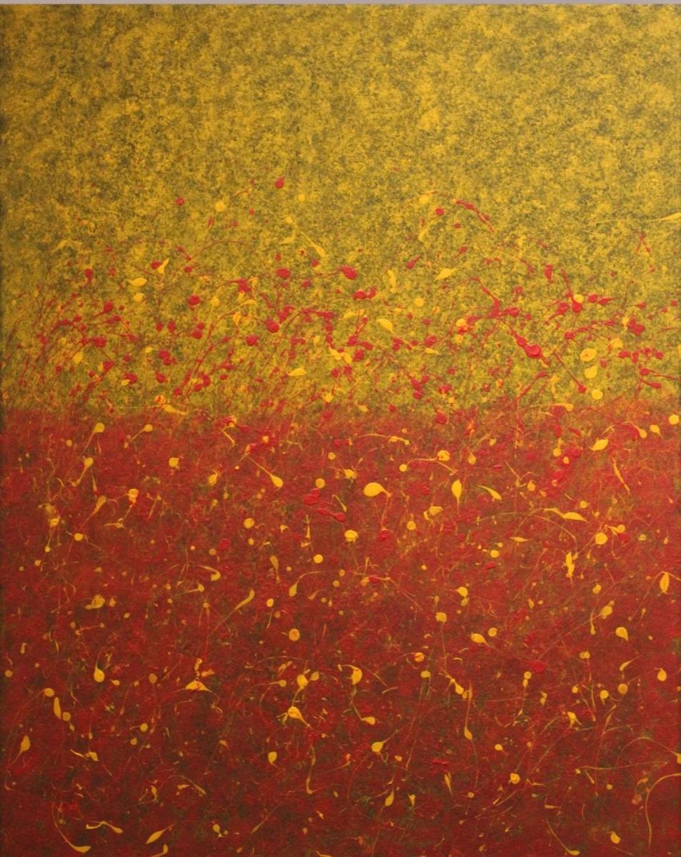 L’artista in questo dipinto cerca di contrastare la ragione che si determina in ogni situazione della sua vita quotidiana ma allo stesso tempo cerca di trovare un equilibrio con quello che potrebbe essere il cuore e la ragione. Questo rosso contrasta il giallo quasi una guerra divisa a metà. Ogni colore cerca di prendere il sopravvento di esso, senza nessuna pietà. Il giallo vuole prevalere sul rosso e anch’esso sul giallo. Vuole trovare un equilibrio tra il cuore e la testa ossia la mente, la ragione cerca di prenderne io sopravvento ma, senza di essa cosa succederebbe?