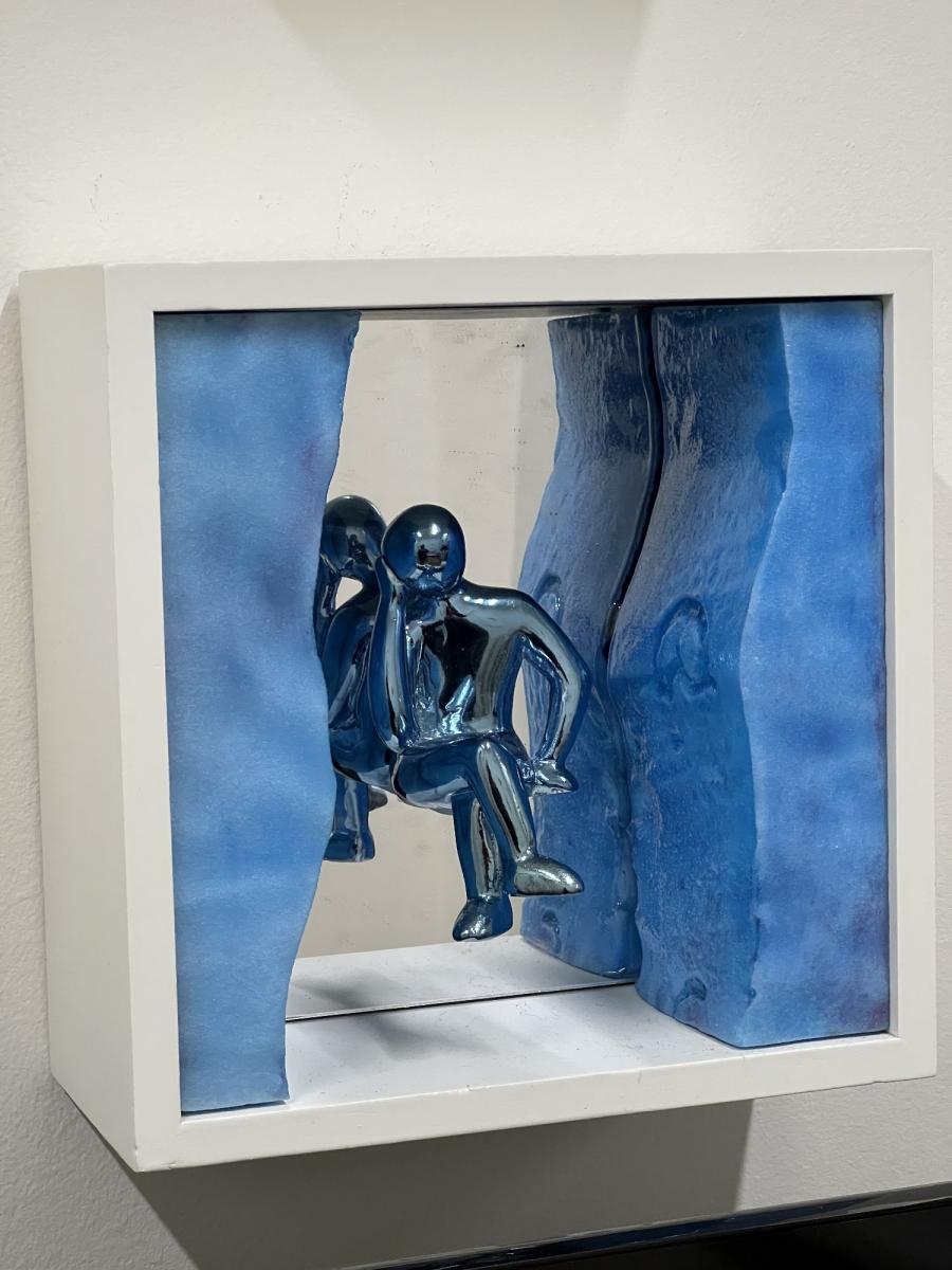 Quadro che può essere appeso che appoggiato. Fa parte della mia collezione dei liberi pensatori ed è realizzato in EPS, resine ed acrilico. Contiene un pensatore da me realizzato in resina.