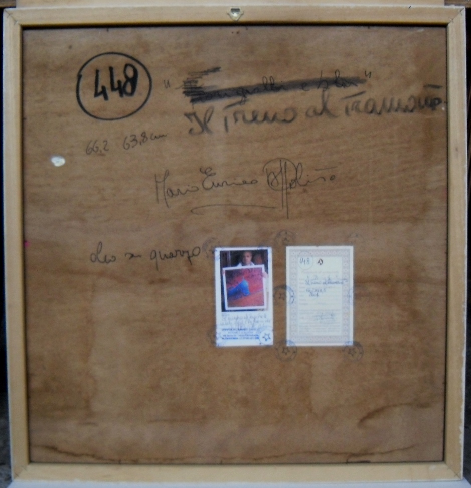 Il dipinto è fornito sul retro dell'Autentica Ufficiale composta da foto che ritrae il sottoscritto Autore con l'opera tra le mani come descritto e visionabile nelle mie NEWS.