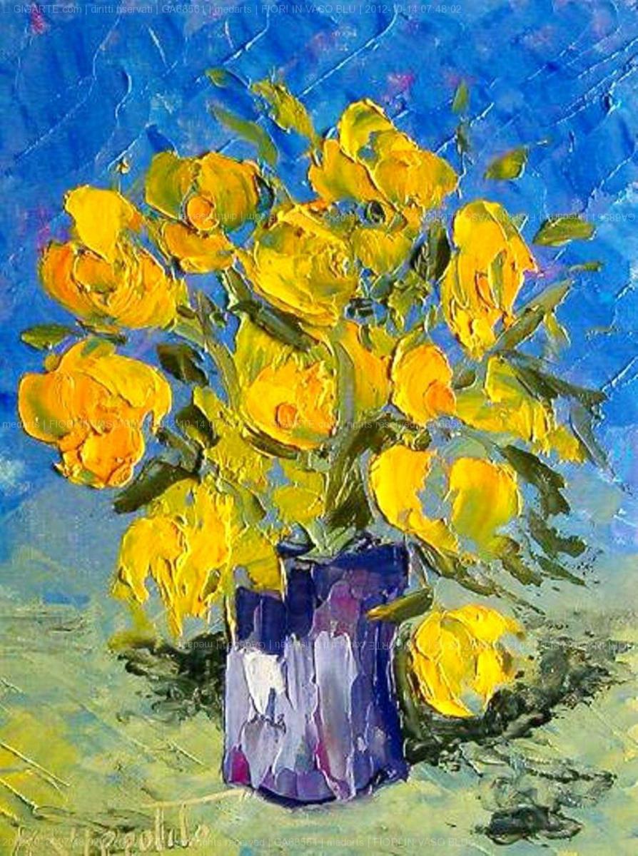 #FIORI IN VASO BLU DIPINTO IMPRESSIONISTA QUADRO AD