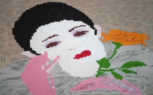 Uncinetto, La tela poggia su un pannello di compensato , 2024