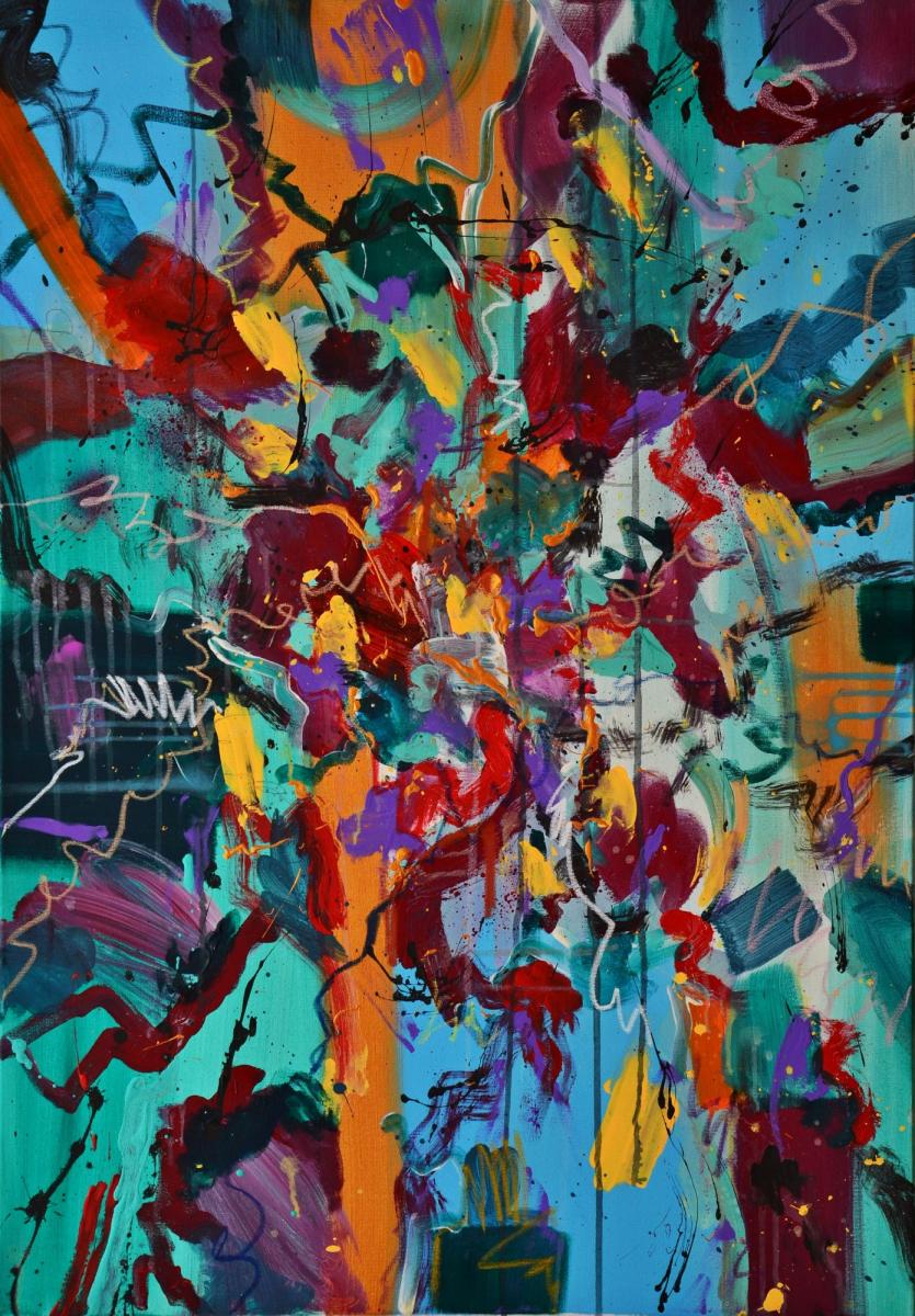 I am an abstract artist whose work explores the emotional and intuitive dimensions of color, texture, and form. My creative process is driven by a deep interest in the unseen – the inner landscapes of thought, memory, and emotion. I seek to translate these intangible experiences into visual compositions that evoke rather than explain.rnrnWorking primarily with acrylics,oil pastels and spray paint, I experiment with layers, gestures, and contrasts to create dynamic surfaces that invite the viewer into a space of reflection and interpretation. Each piece is a dialogue between spontaneity and control, chaos and harmony, silence and movement.
