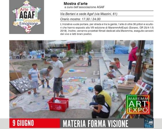 Siete tutti invitati in occasione della notte visibile, il giorno 9 giugno 2018 dalle ore 17,30 alle 24 alla mostra d'arte, presso la nostra associazione AGAF in via Mazzini,61 e per strada in via Bertani centro storico a Grosseto.