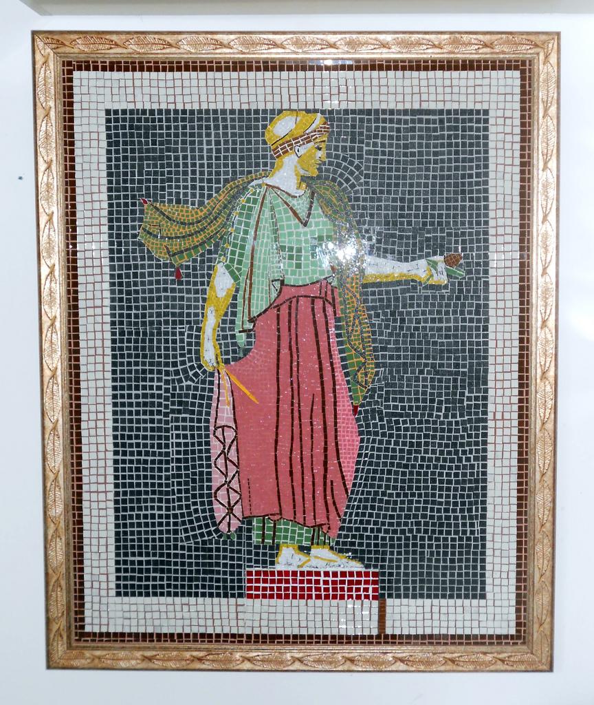 Donna greco-romana. Mosaico in vetro pittorico, parti in micromosaico. Con cornice. Tratto da un mosaico antico.