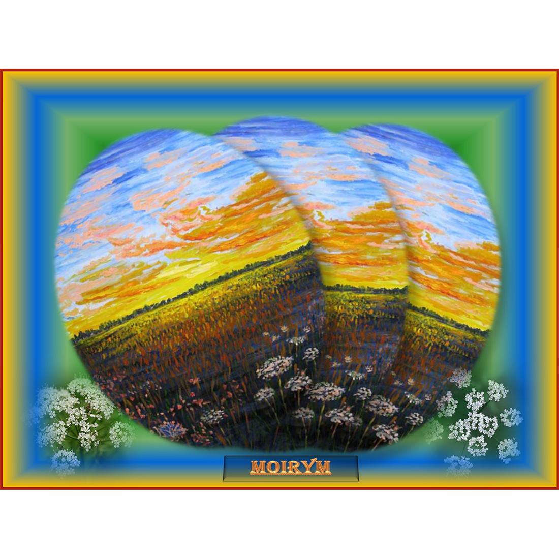 Tramonto sui campi con cornice digitale