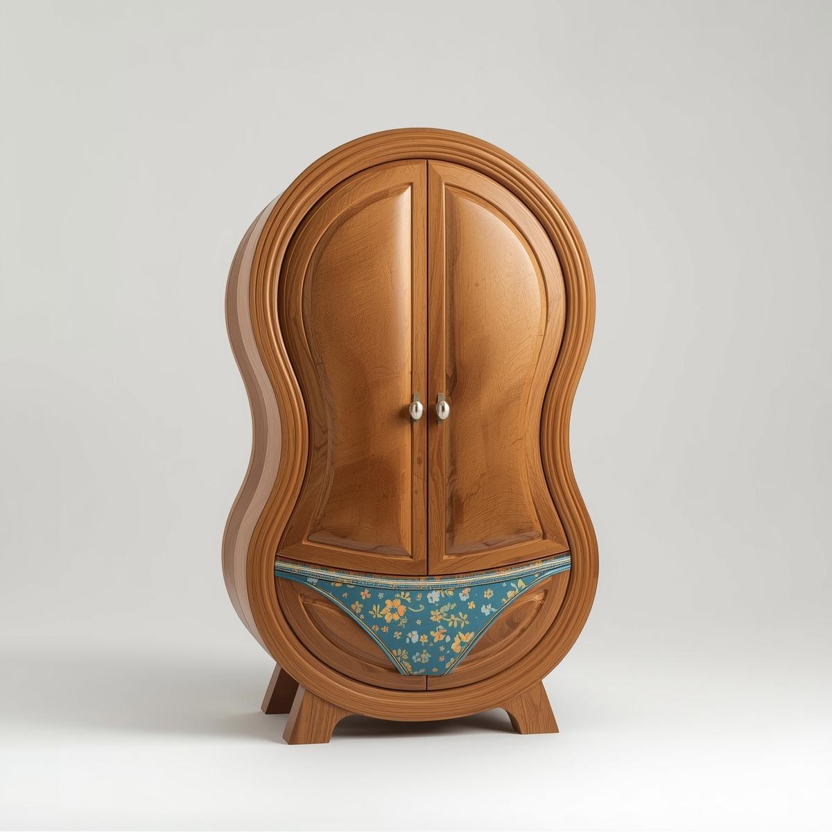 Functional Reversal: A wardrobe is traditionally an object of concealment and order, meant to guard our private lives (clothes). Giving it the shape of the most intimate garment (the underwear) transforms the container into the contained, and above all, exposes what should be private.