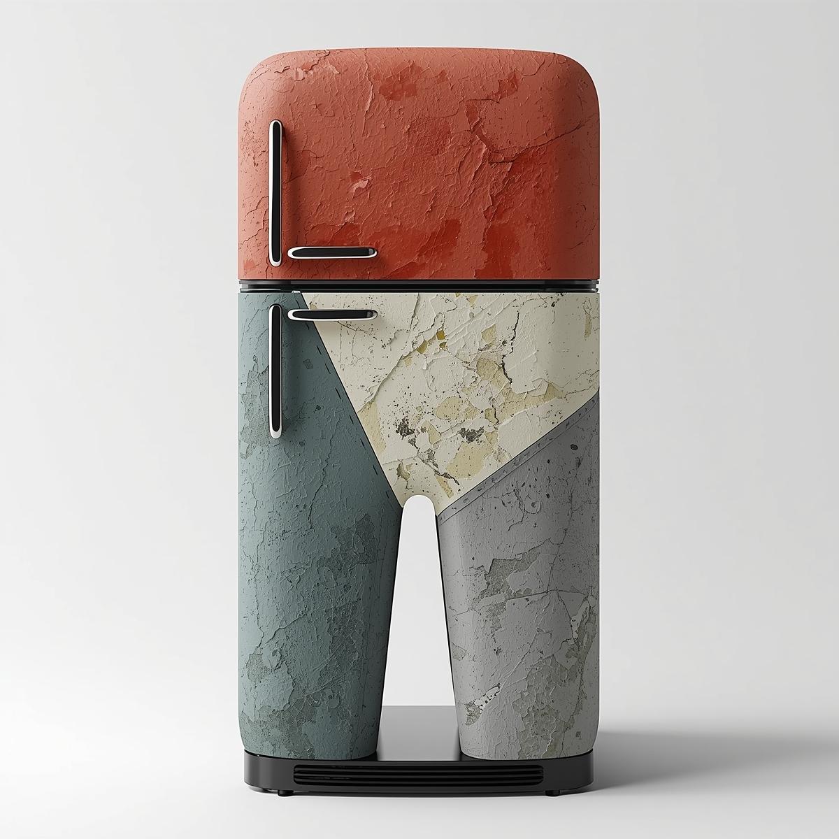 La Texture (Crakelé): La superficie non è liscia e metallica come ci si aspetterebbe da un frigorifero moderno. È invece ricoperta da una texture che simula l'intonaco scrostato di un vecchio edificio urbano. Questo contrasto tra la "tecnologia" dell'elettrodomestico e la "decadenza" del materiale edilizio è il cuore visivo dell'opera.