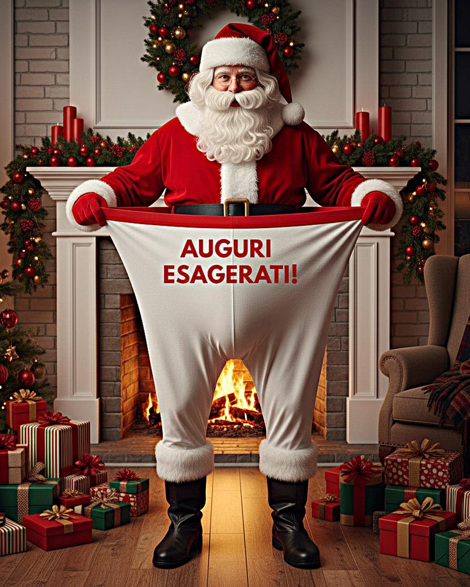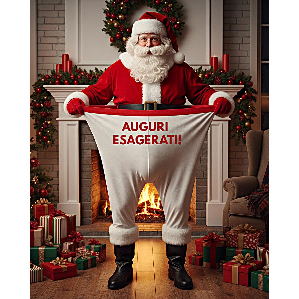 La Metafora del "Peso" delle Feste: Il Babbo Natale che "non riempie" i propri pantaloni o che indossa un indumento fuori misura può suggerire l'idea che le aspettative natalizie siano diventate troppo grandi (esagerate, appunto) per essere sostenute.