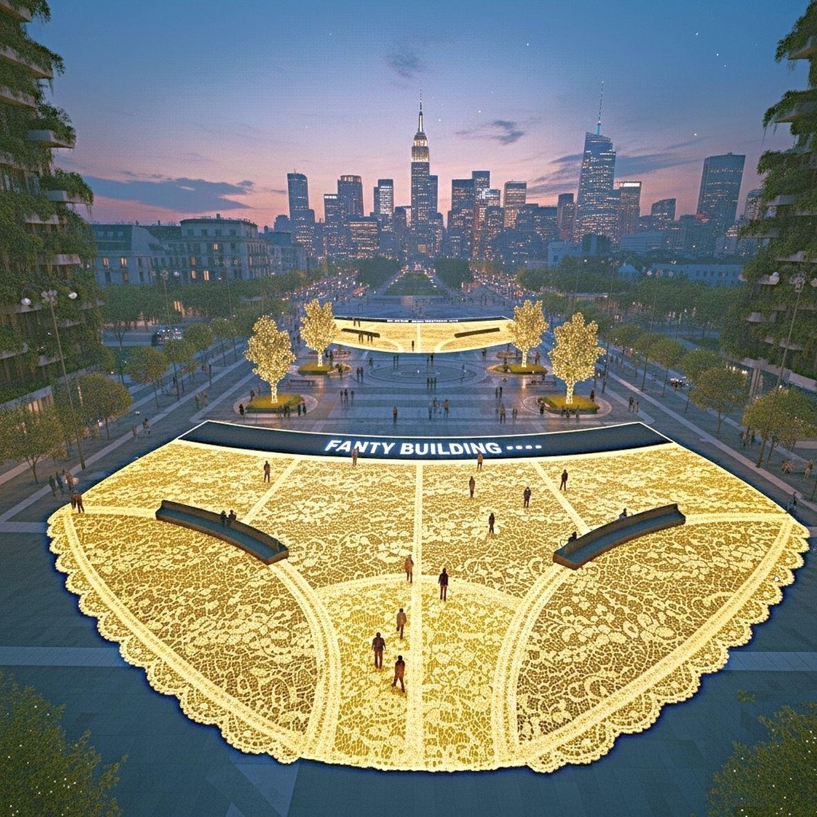 Questa immagine presenta un'operazione di Guerrilla Marketing digitale o un concept di architettura utopica che fonde provocazione pop, critica sociale e una forte componente estetica. L'installazione, collocata nel cuore di New York con vista sull'Empire State Building, è un esempio lampante di come l'intimo possa diventare monumentale.