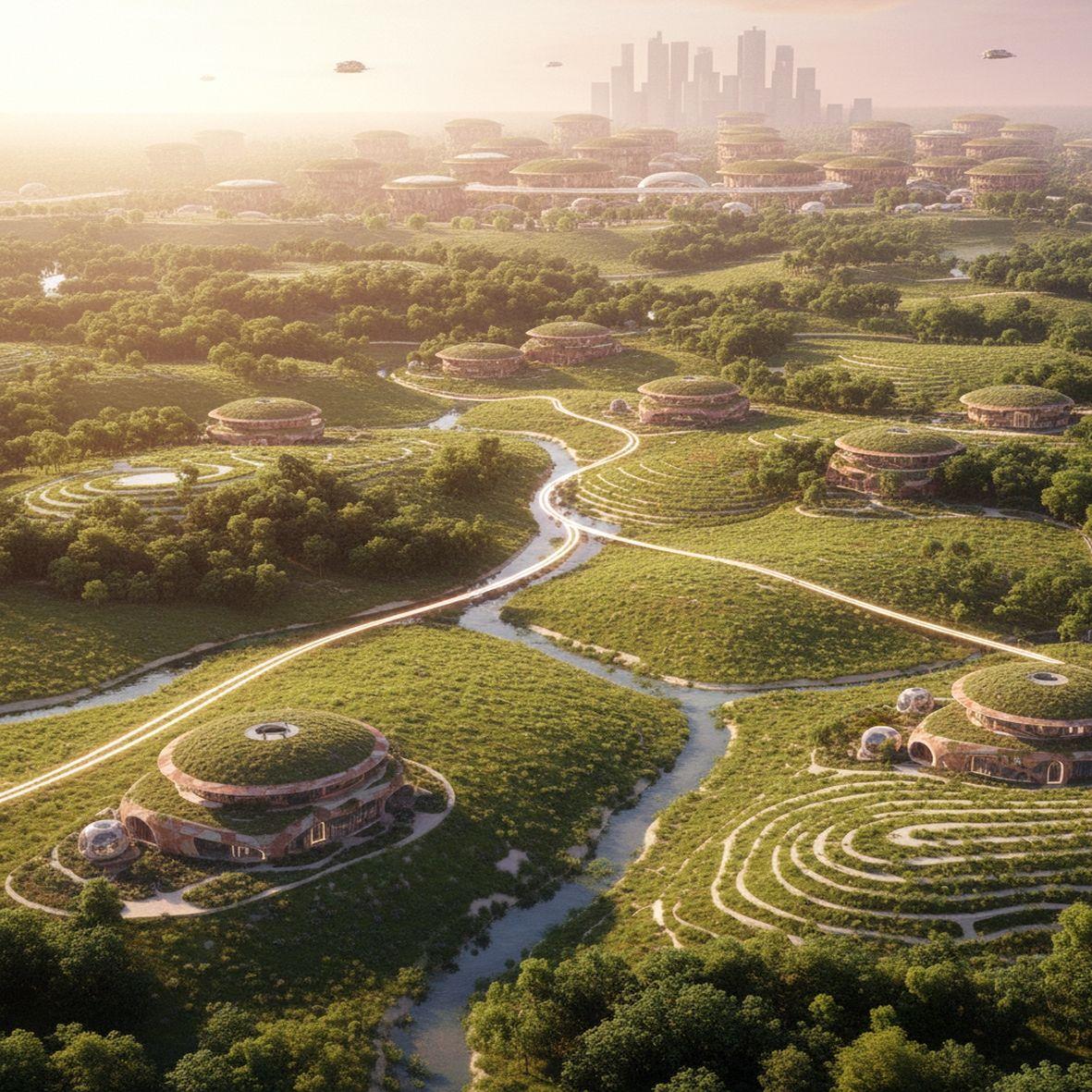 Morfologia: Gli edifici non "occupano" il suolo, ma sembrano scaturire da esso. La forma sferoidale e a cupola ribassata richiama strutture primordiali (come l'igloo o la tana), ma declinate con materiali futuristici.