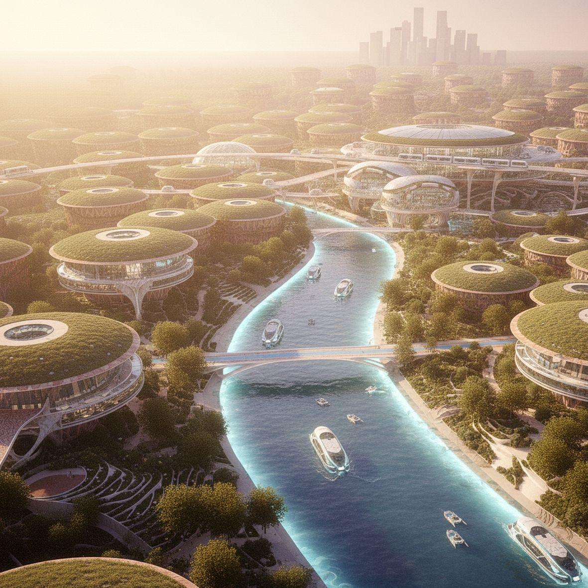 Integrazione del Verde: I tetti sono veri e propri giardini pensili (green roofs). In Spheropolis, l'edificio non sottrae suolo alla natura, ma diventa esso stesso una "collina artificiale", promuovendo un'estetica biomorfica dove architettura e biosfera sono indistinguibili.