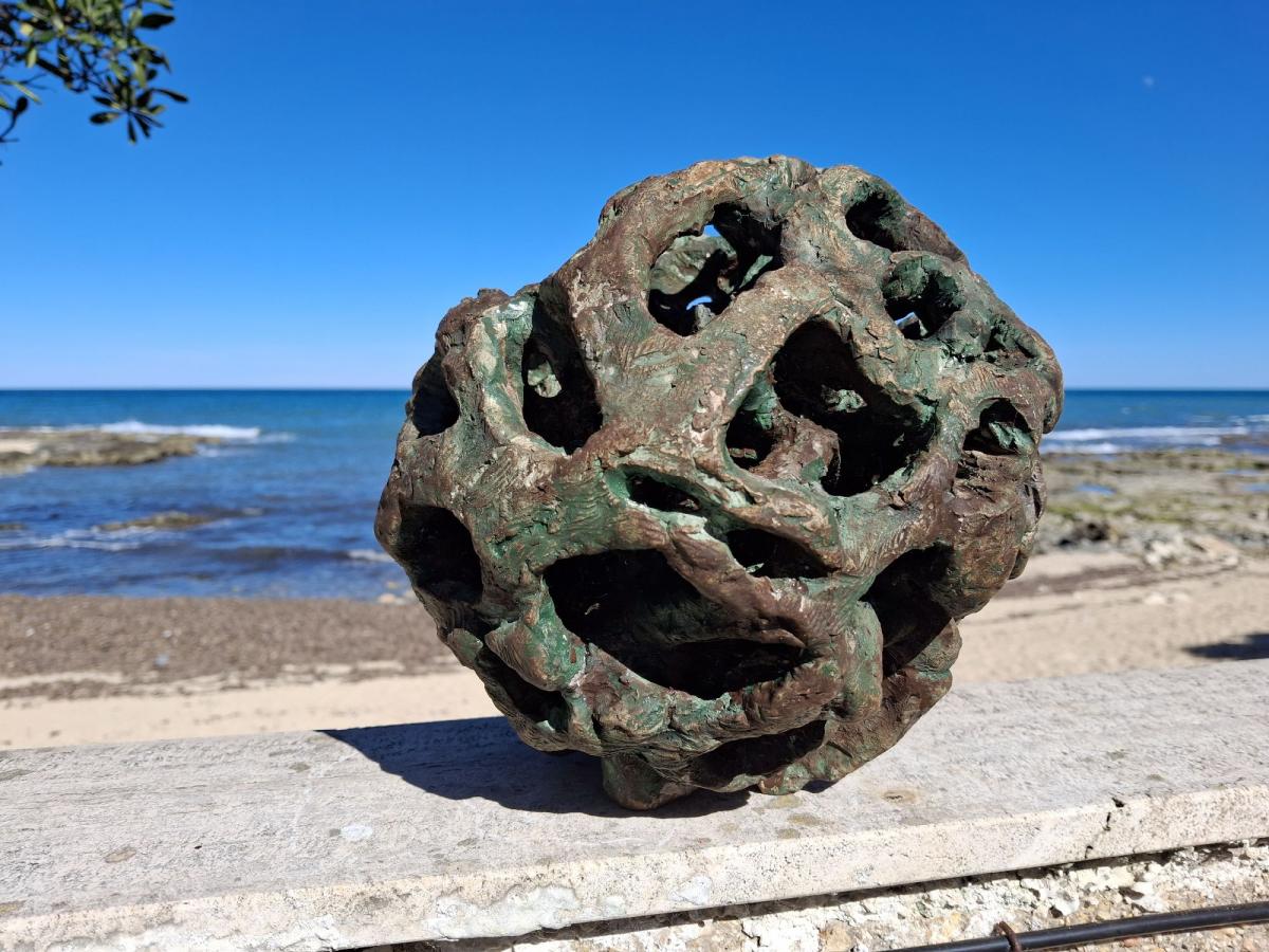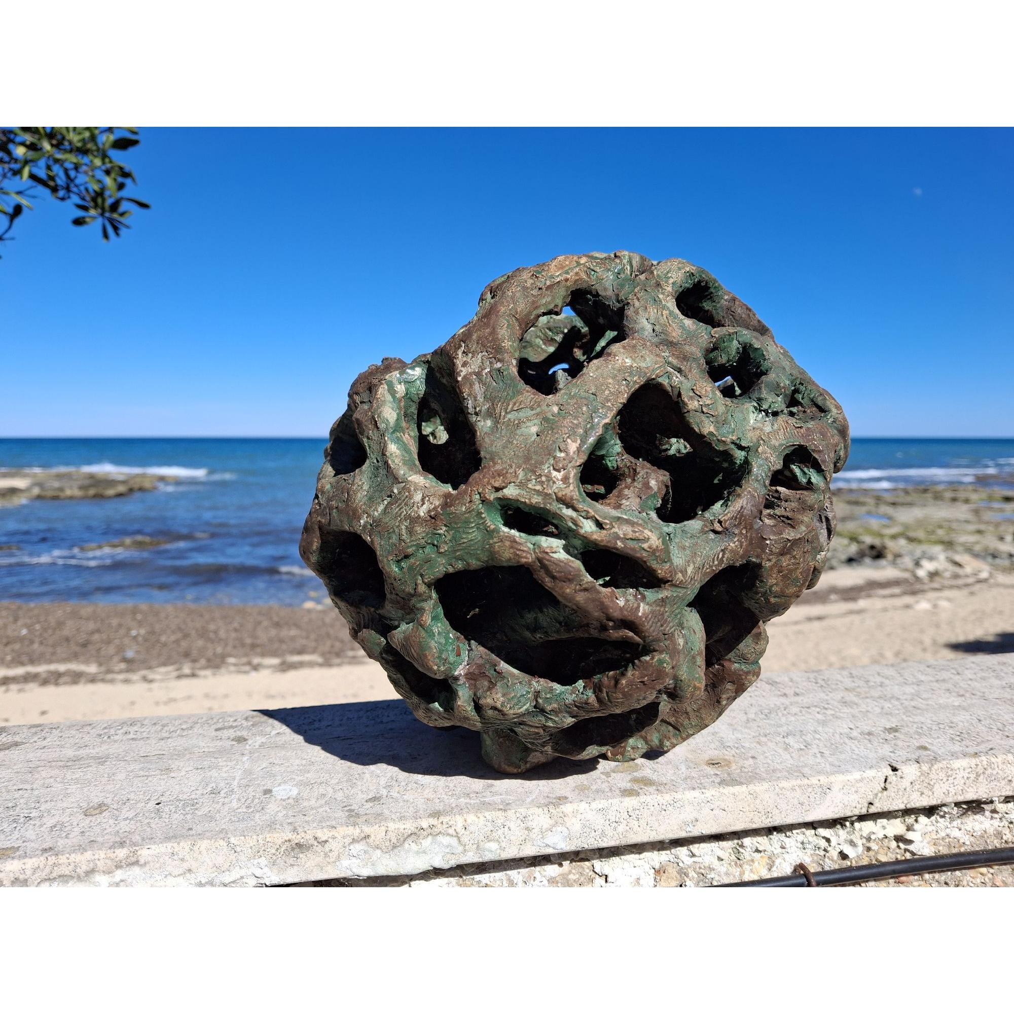 Scultura a tutto tondo in terracotta bianca autoindurente, riferimento al cosmo inesplorabile in cui cintinua a prevalere il mistero della vita e della morte...