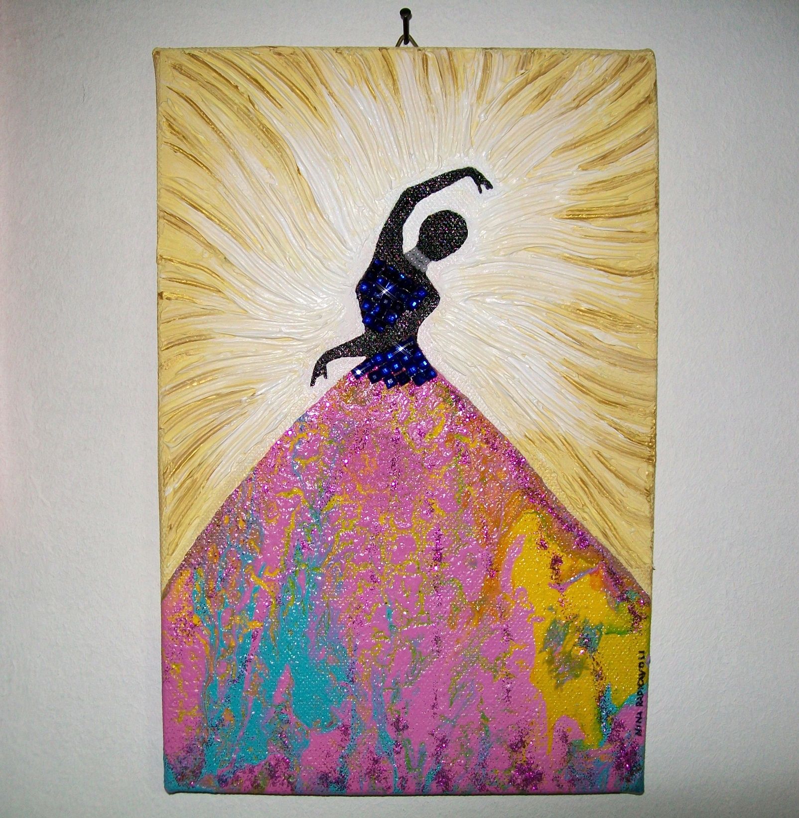Il dipinto brilla creando luce nella parete, grazie alle applicazioni e ai dettagli in rilievo; le sue dimensioni gli consentono di essere posto in qualunque luogo.