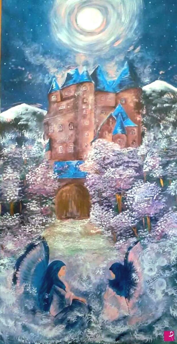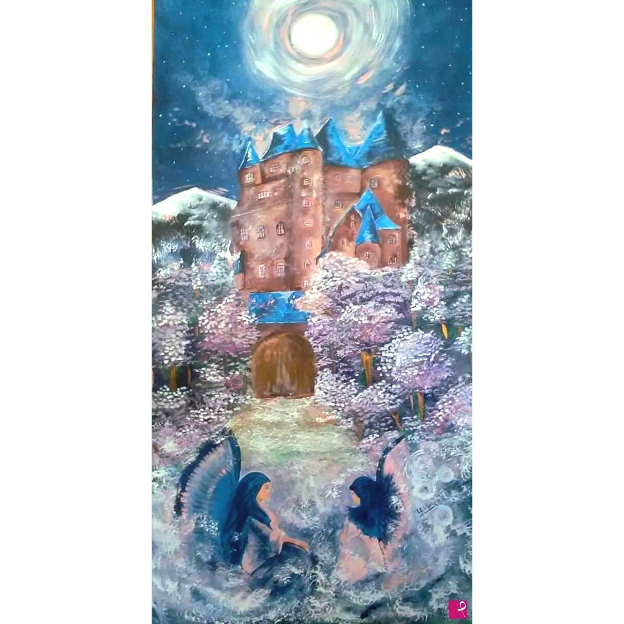"Hai mai desiderato perderti in una fiaba? ? Questo dipinto originale cattura l'istante in cui il mondo reale sfuma nel sogno. Tra boschi lilla e castelli sospesi sotto una luna magnetica, è il pezzo perfetto per chi cerca un tocco di magia e pace tra le mura di casa. ????????