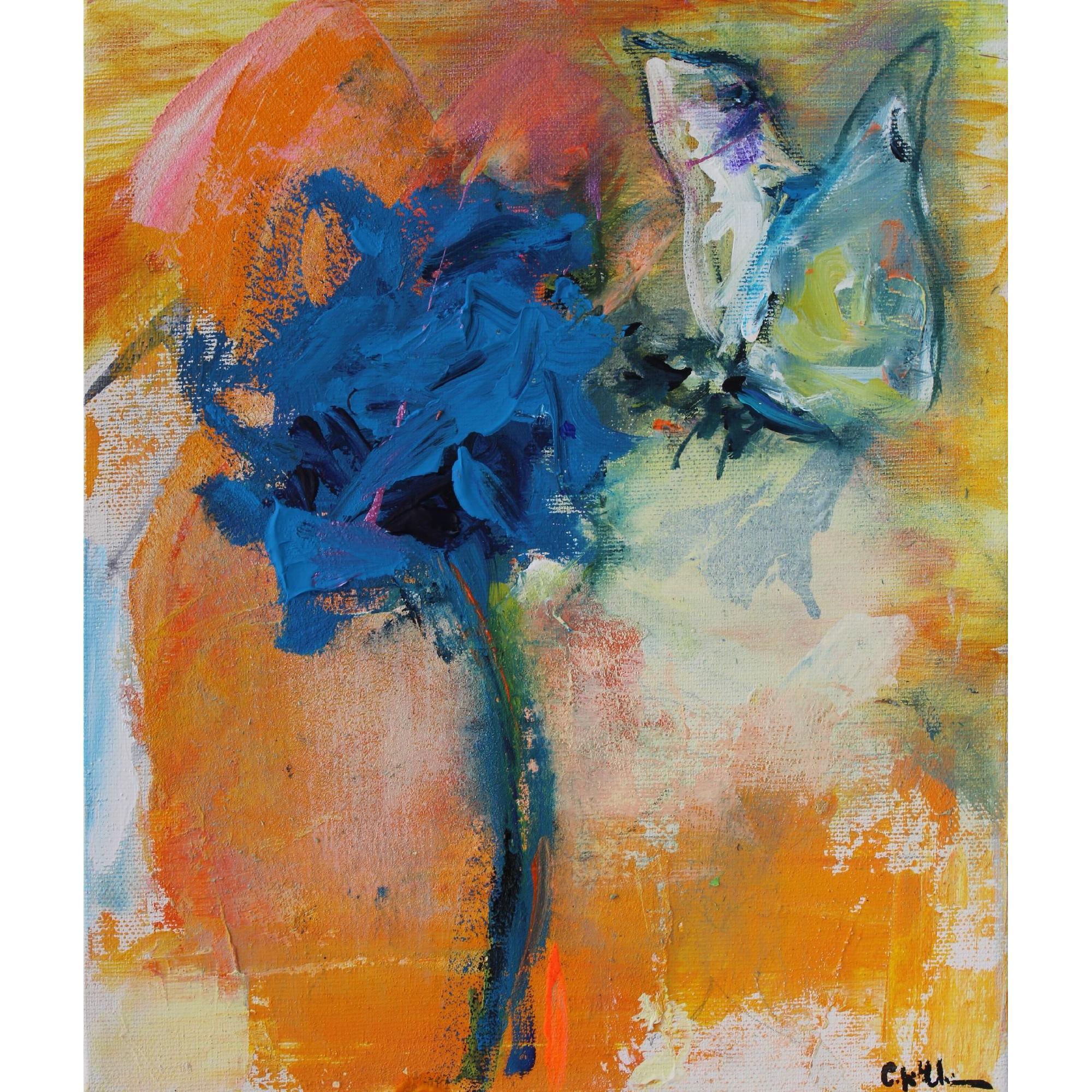 La farfalla e il fiordaliso 2023 acrilico su tela cm 30x25