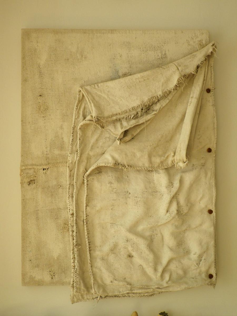 Ferrari ha conservato i sacchi di yuta, ancora profumati di frumento e farina. Tra gli anni trenta e quaranta hanno portato, in quel mulino di quel piccolo borgo, il mondo non ancora mondializzato. Le scritte stampate raccontano di luoghi esotici allora mitici: New York, Cuba, Haiti, Mississipi. Storie di carretti, di braccia, di treni, di bastimenti…di rammendi fortuiti e provvidenziali. Lontano da ogni operazione esclusivamente nostalgica o demoetnoantropologica, Paolo Ferrari celebra rendendogli omaggio, il lavoro manuale. Nessun intento semplicisticamente ecologista delle ormai logore e di maniera formule del “riciclo creativo”, quanto piuttosto il saper leggere il valore formale ed emotivo di oggetti in disuso. Una borchia arrugginita e una fascia di cuoio si rapportano a velature che abbassano, pittoricamente, le scritte stampate sulle yute. Lontanissimo se possibile da ogni velleità pop, non profetizza nessuna reificazione dell’opera d’arte, nessuna “riproducibilità tecnica”. Per dirla alla Calvesi “l’informale materico riesce a portare la vita nell’arte