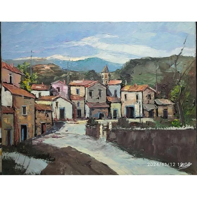 Paesaggio dei Monti Dauni, 2024(Pittura a spatola, cm. 59 x 40)Artista: Mure' 3 gen 2025(...)>" I paesaggi di Mure', sia nei tratti che nei colori, ci fanno comprendere benissimo che l'Artista è legato oltre che al territorio Campano, anche alla Provincia nella quale vive e le sue tele si pongono bene all'interessamento del pubblico."