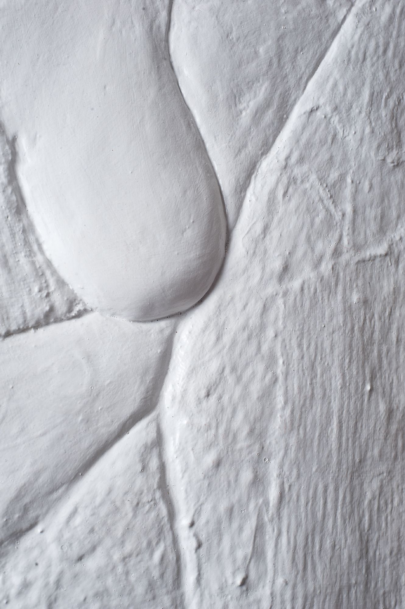 Astrazione e sintesi che ricordano una madre che allatta. Bianca come il latte, pura e pacifica come il contatto tra madre e figlio. Questo lavoro è stato fatto molti anni prima che iniziassi con il tema della violenza di genere e il concetto di intervallo. A differenza delle altre opere di quel periodo, espongo questa perché l'ho fatta senza sapere che sarebbe diventata il punto di partenza del progetto chiamato Why White Why su cui sto ancora lavorando.