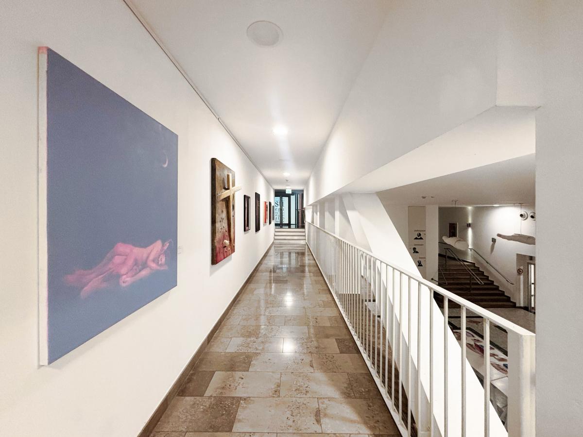 Molti degli artisti invitati hanno reso omaggio a quell’idea di corpo: Emanuele Gregolin e Maurizio Pometti con i loro giovinetti – i ragazzi di vita – plasmati nella sensualità di un colore potentemente espressivo; Ugo Riva, Daniele Scarpa Kos, Ferdinando Bruni, Sergio Battarola, Maurizio L’Altrella e Marco Rossi con le loro figure tragiche, immerse in atmosfere dalla tensione emotiva tangibile e palpitante. Pensano al corpo anche Giuseppe Siracusa che mette in scena una composizione dal forte taglio teatrale, che coniuga vita, amore e morte, e Paolo Caldarella, che sospende due corpi nudi in una dimensione priva di spazio-tempo, onirica e sospesa come un sogno. Ma rimandano al corpo anche la mano intessuta nei fili di metallo di Anna Santinello, una mano che si trasforma in gesto simbolico, in drammatica presenza, e i furiosi e travolgenti segni tracciati da Alessandro Verdi con il vigore e la meravigliosa istintualità che sempre contraddistinguono la sua ricerca. Il segno e il gesto pittorico tradotti in composizioni astratte ma dal forte impatto emotivo caratterizzano anche il lavoro di Chen Jianping , unico artista straniero in mostra (proveniente dalla Cina) e quello di Dolores Previtali, che per l’occasione sceglie un’opera ben distante dalla sua consueta produzione, affidando al potere del colore la propria riflessione.