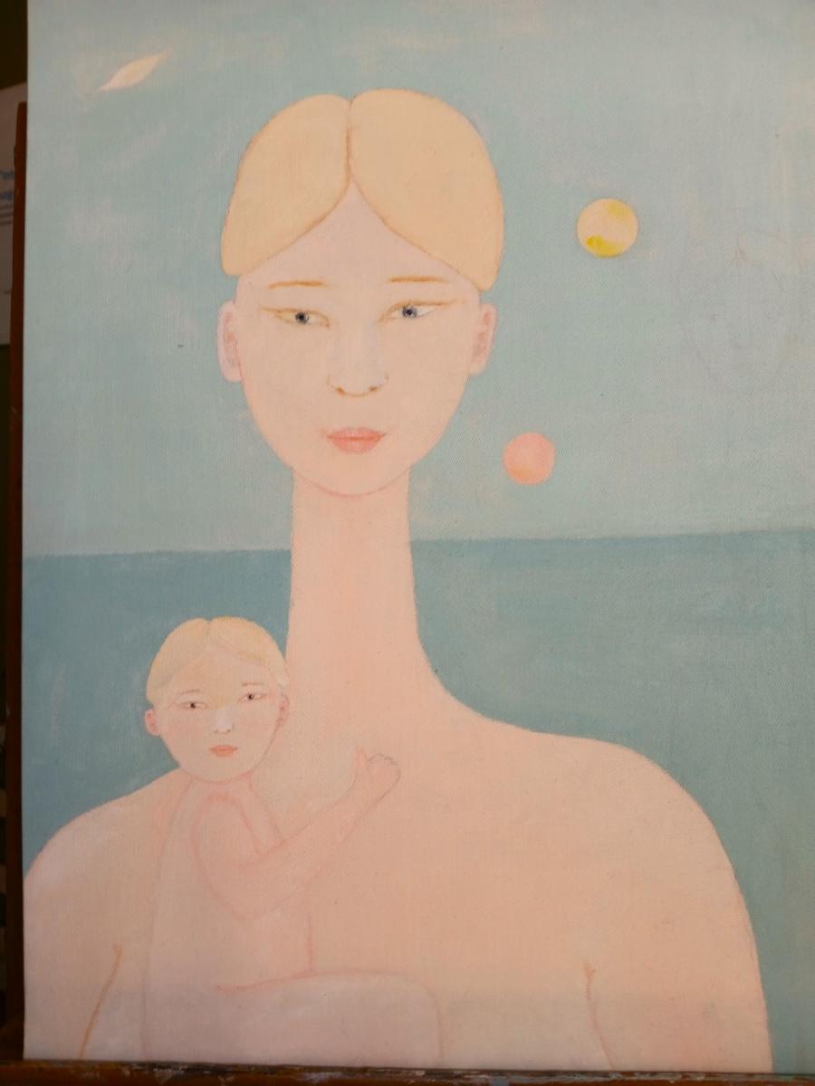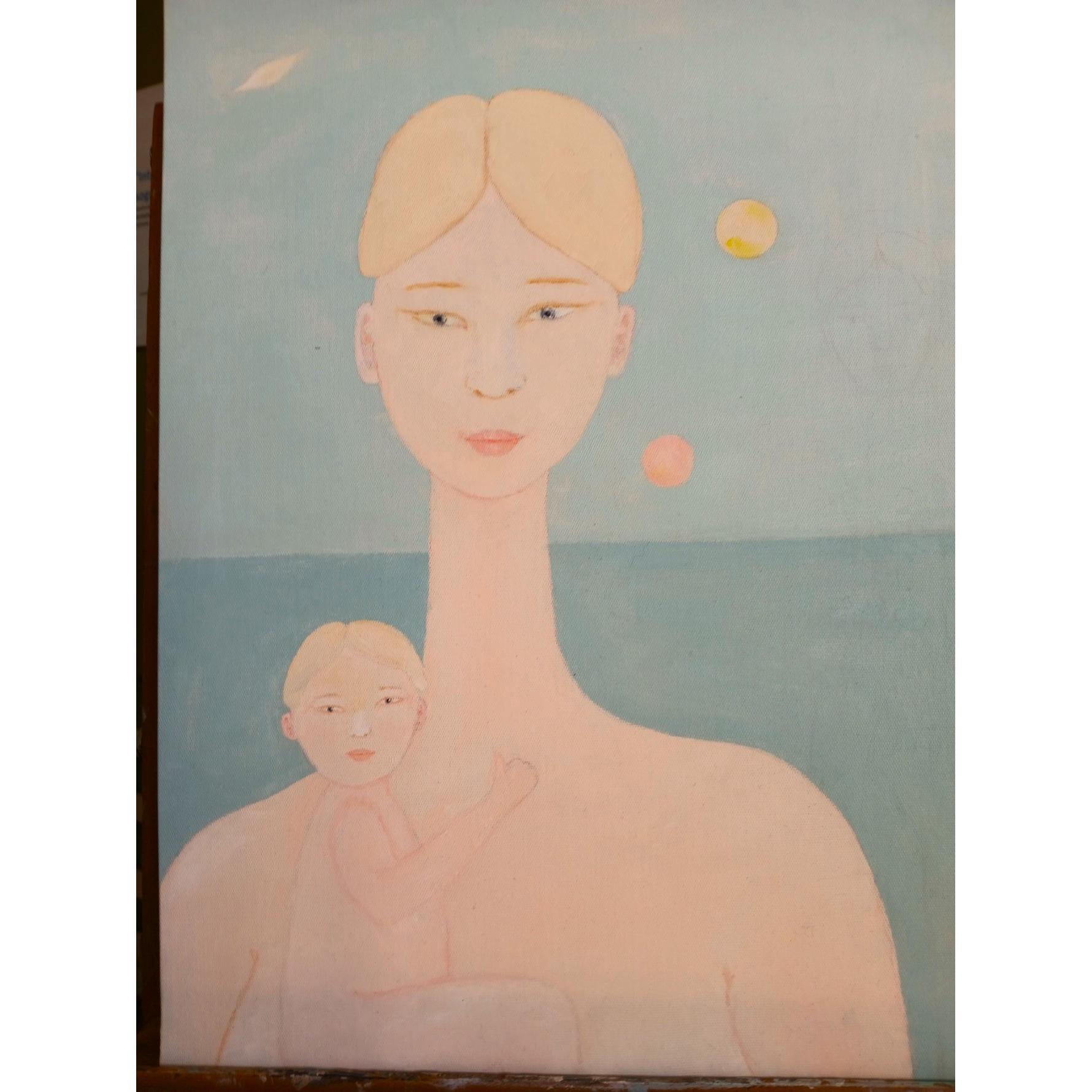 A new motherhood of women like Yu, who live beyond good and evil, and inhabit a planet of Andromeda. Here Yu shows her blonde child, they are safe, they know that no one can do any harm to them. Evil does not exist on Andromeda.