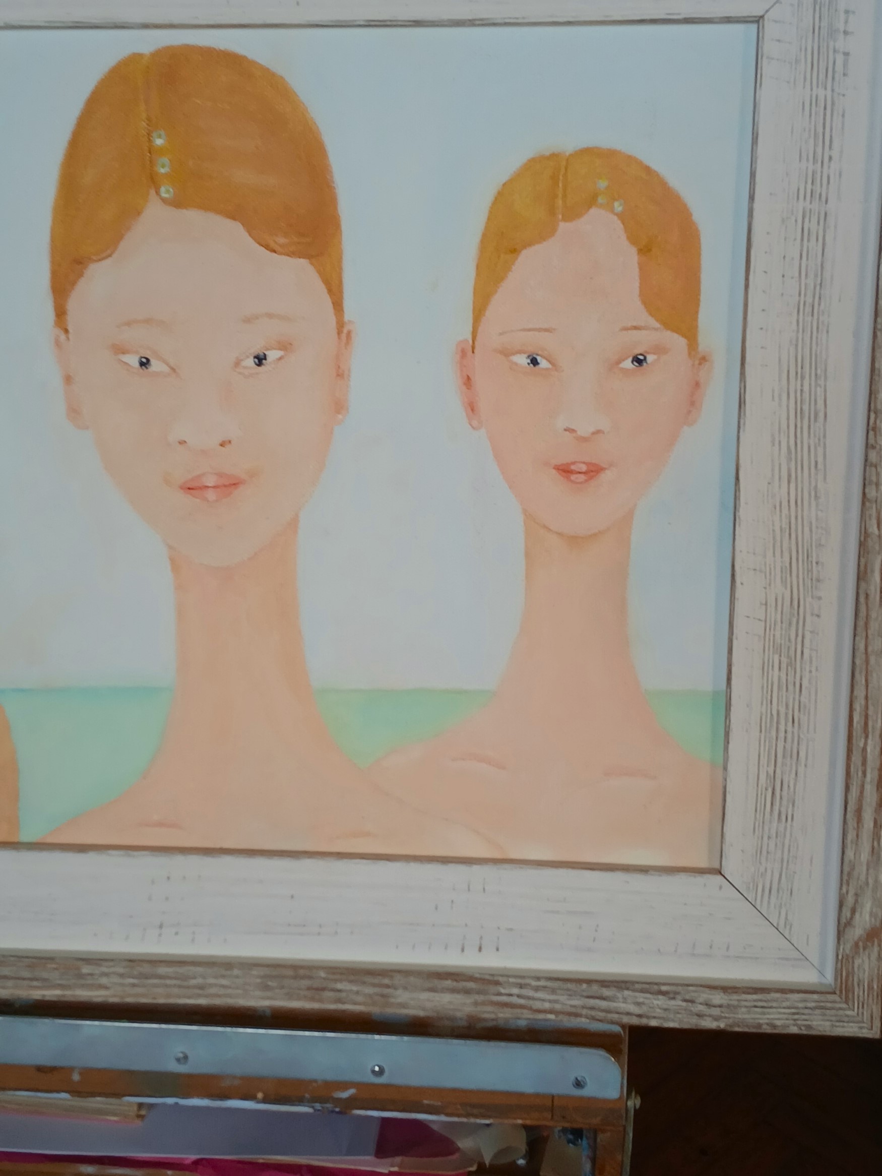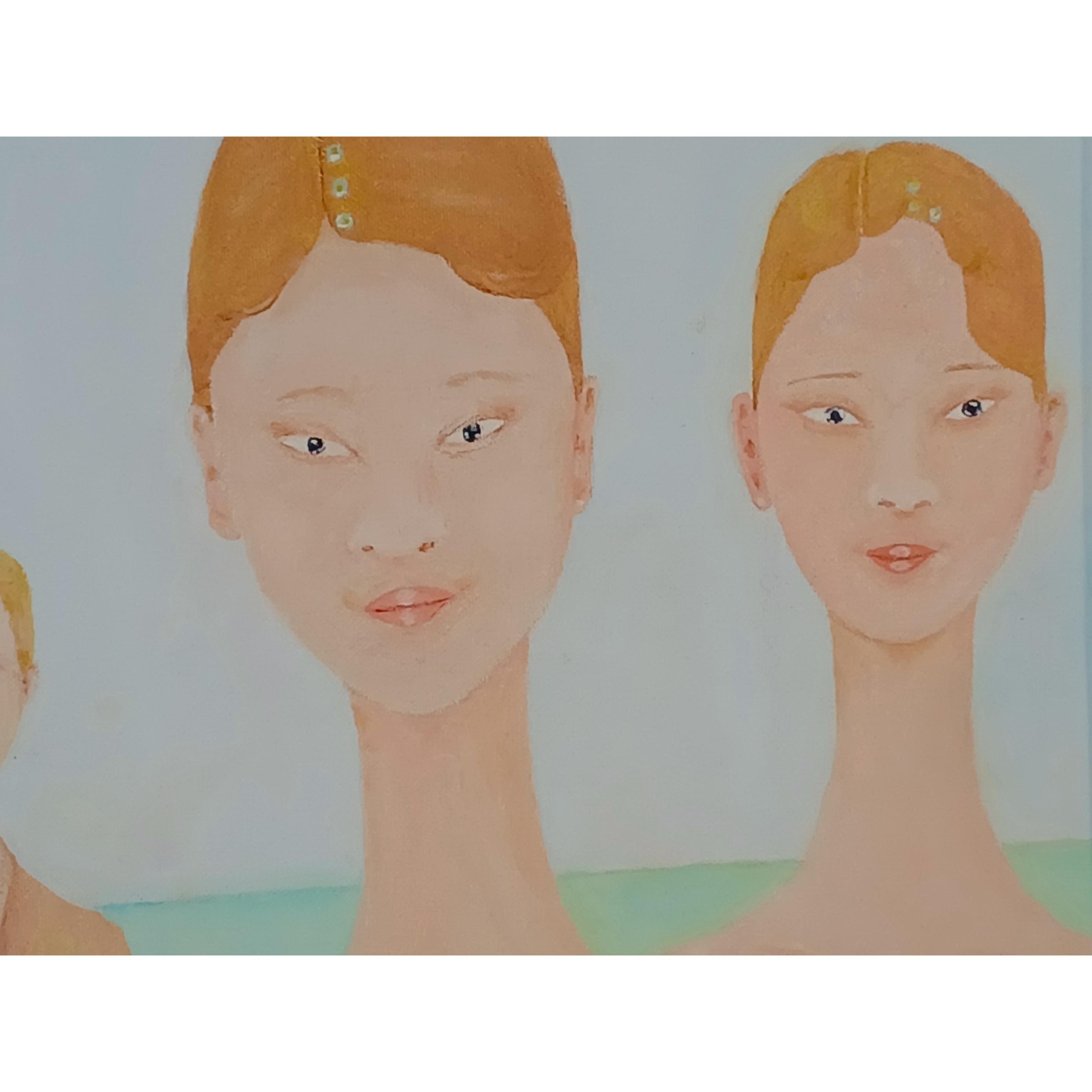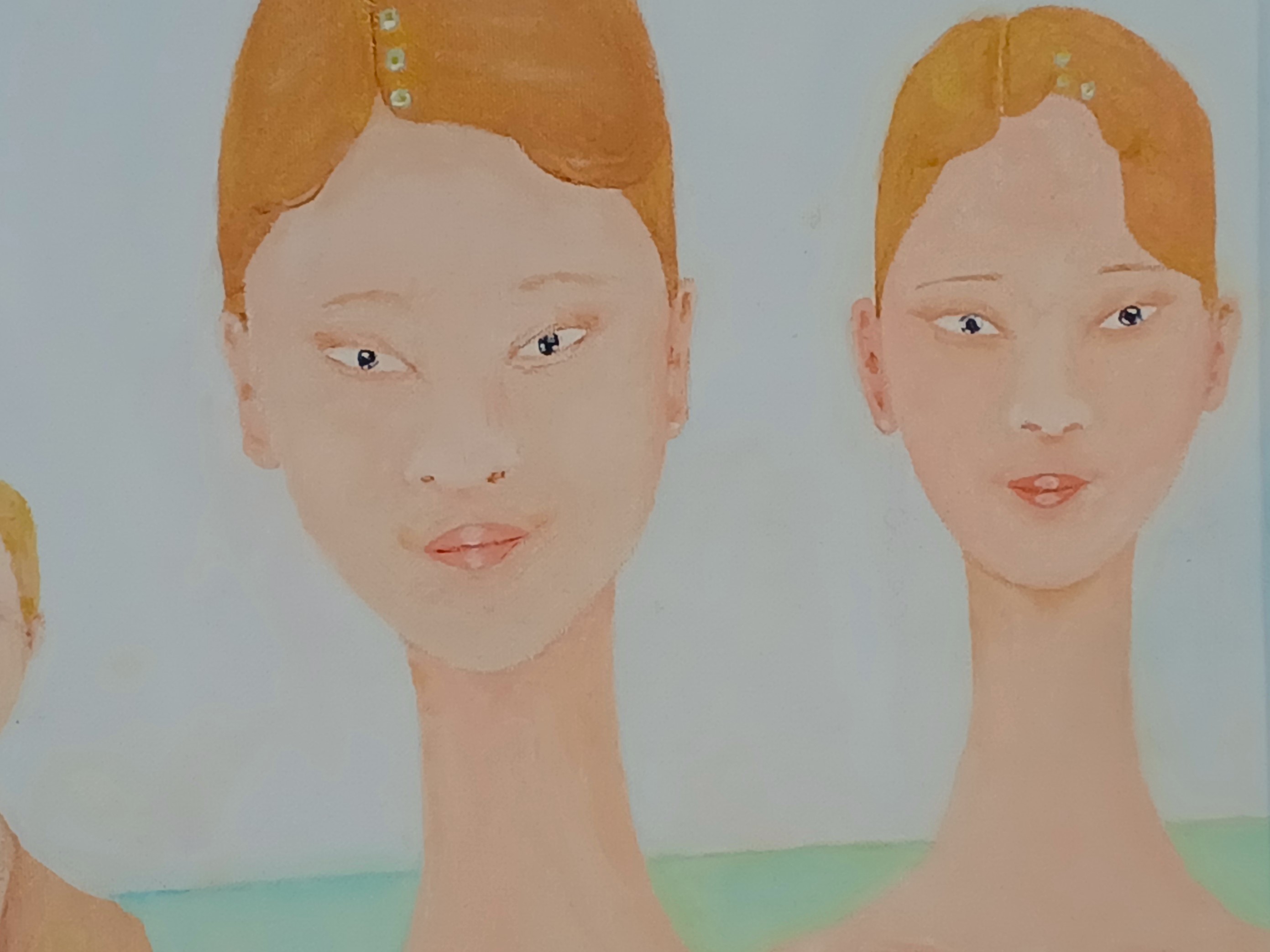 Two young female beings full of love that comes out by showing in their gaze; they realize that they are seen, caught in their presence in the channel of curved spacetime that binds themselves and a kindred being on Earth in an entanglement.