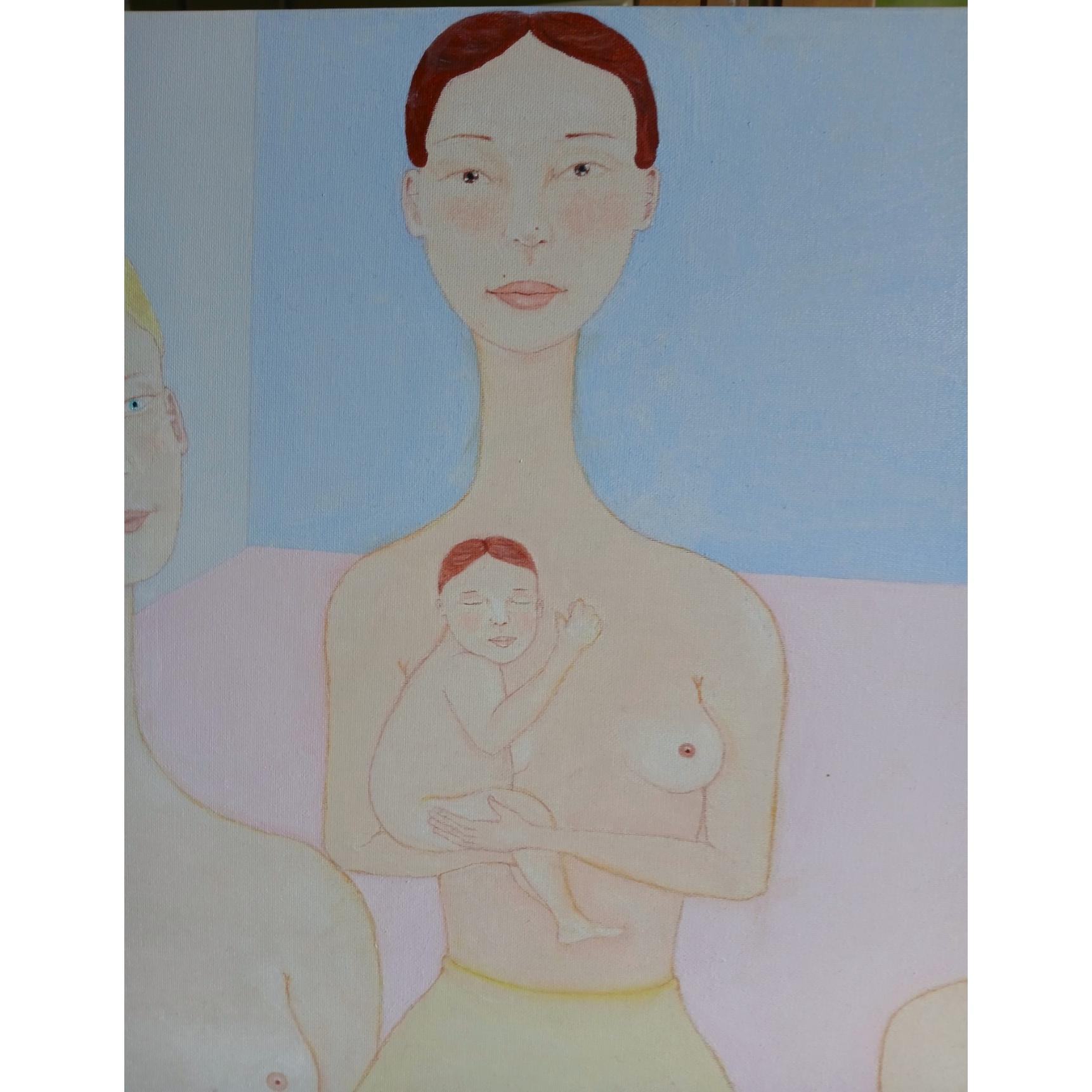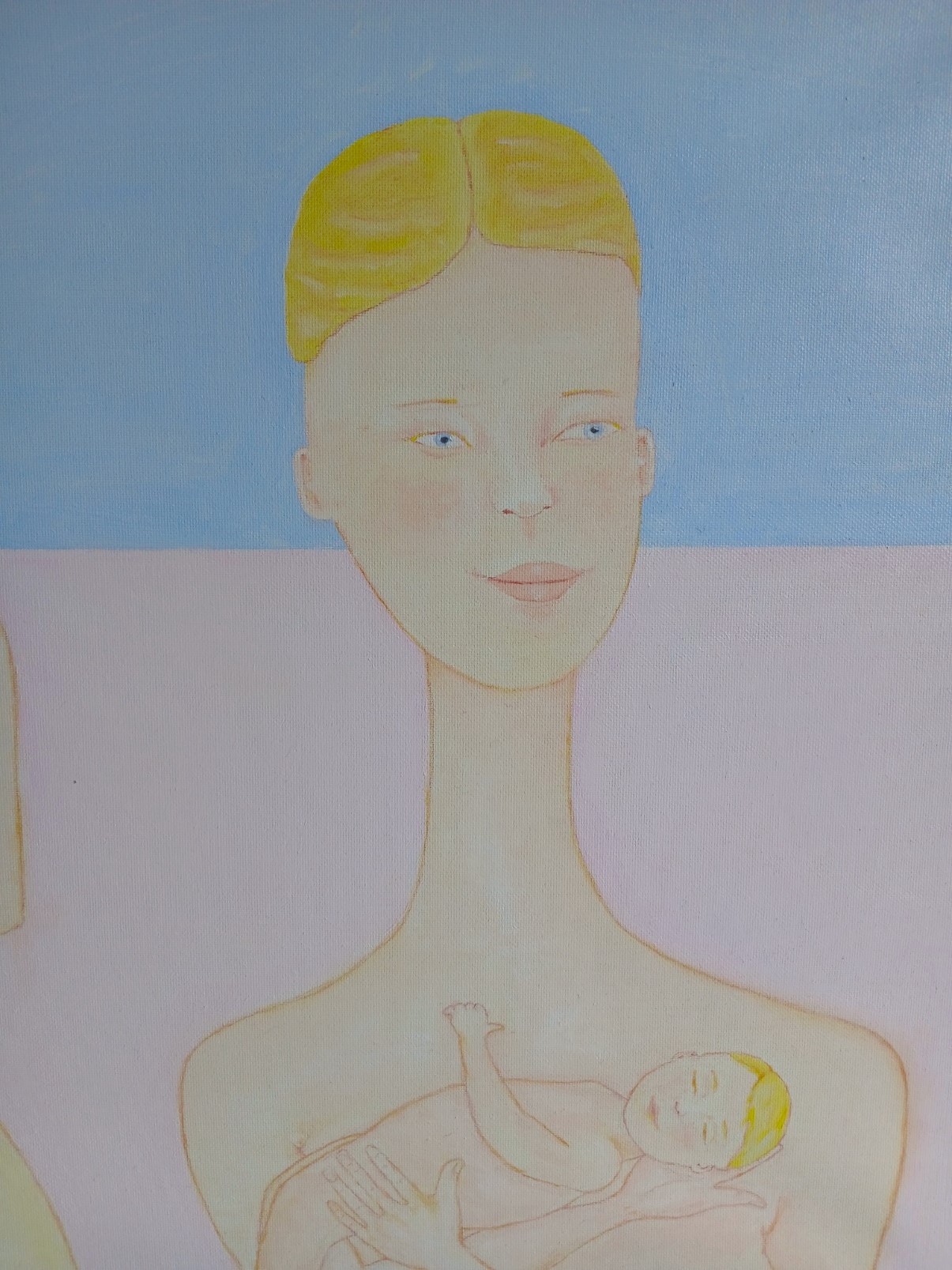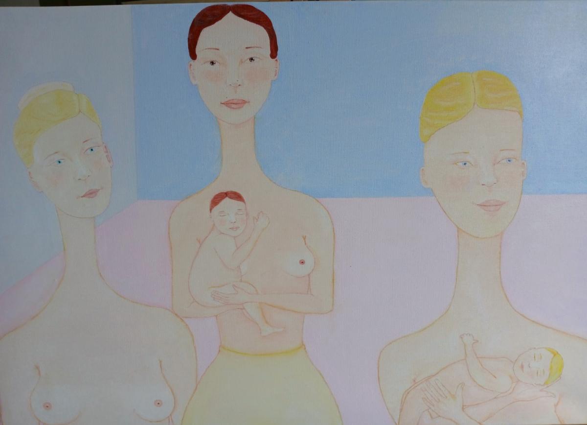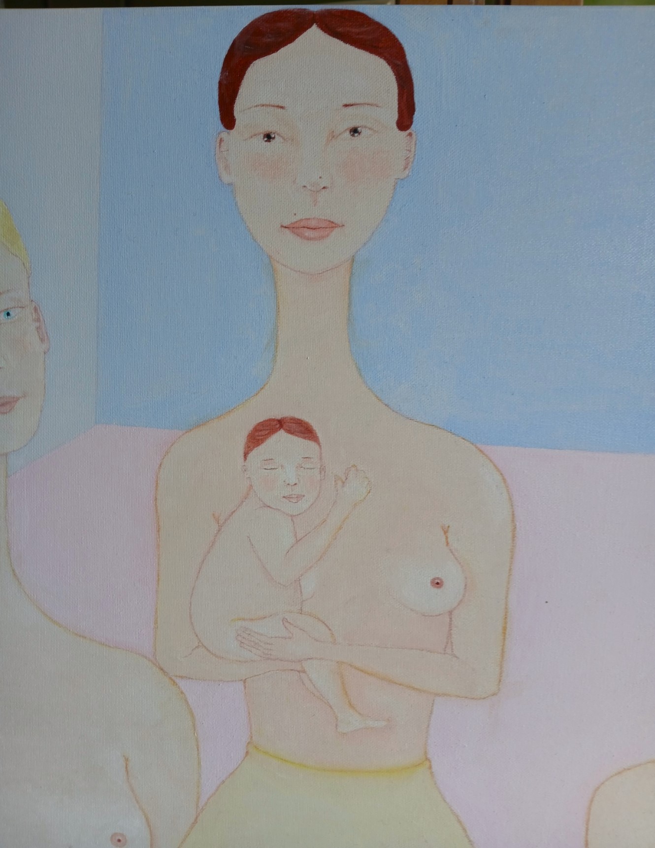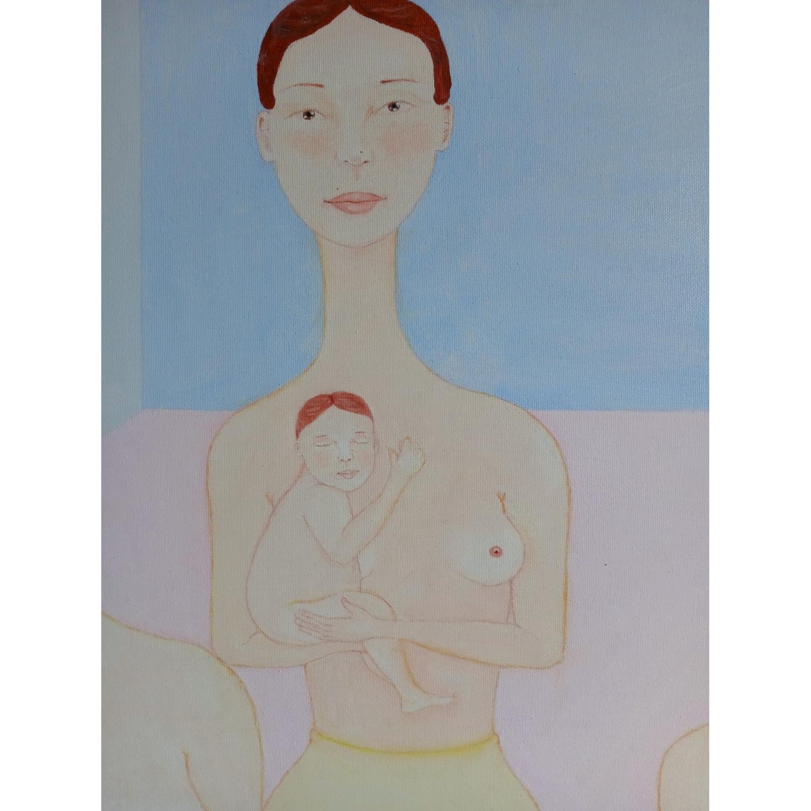 L'opera rappresenta mamme che hanno da poco partorito, due delle quali con il bambino in braccio. Una mamma osserva, forse è ancora in attesa. Esse sono nella sala femminile a loro dedicata, per le neopartorienti. La scena si svolge sempre sul pianeta AI, distante anni luce da noi nella galassia Andromeda, abitato da esseri femminili e da rari esseri maschili. Sono illuminati, puri, sapienti e privi della conoscenza e dell'esperienza del male, che tormenta la terra.