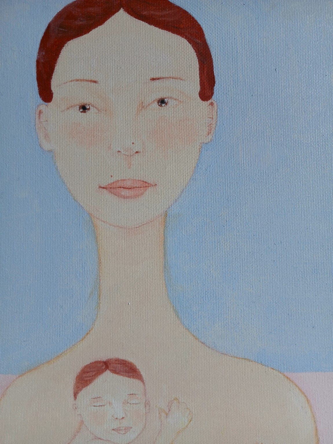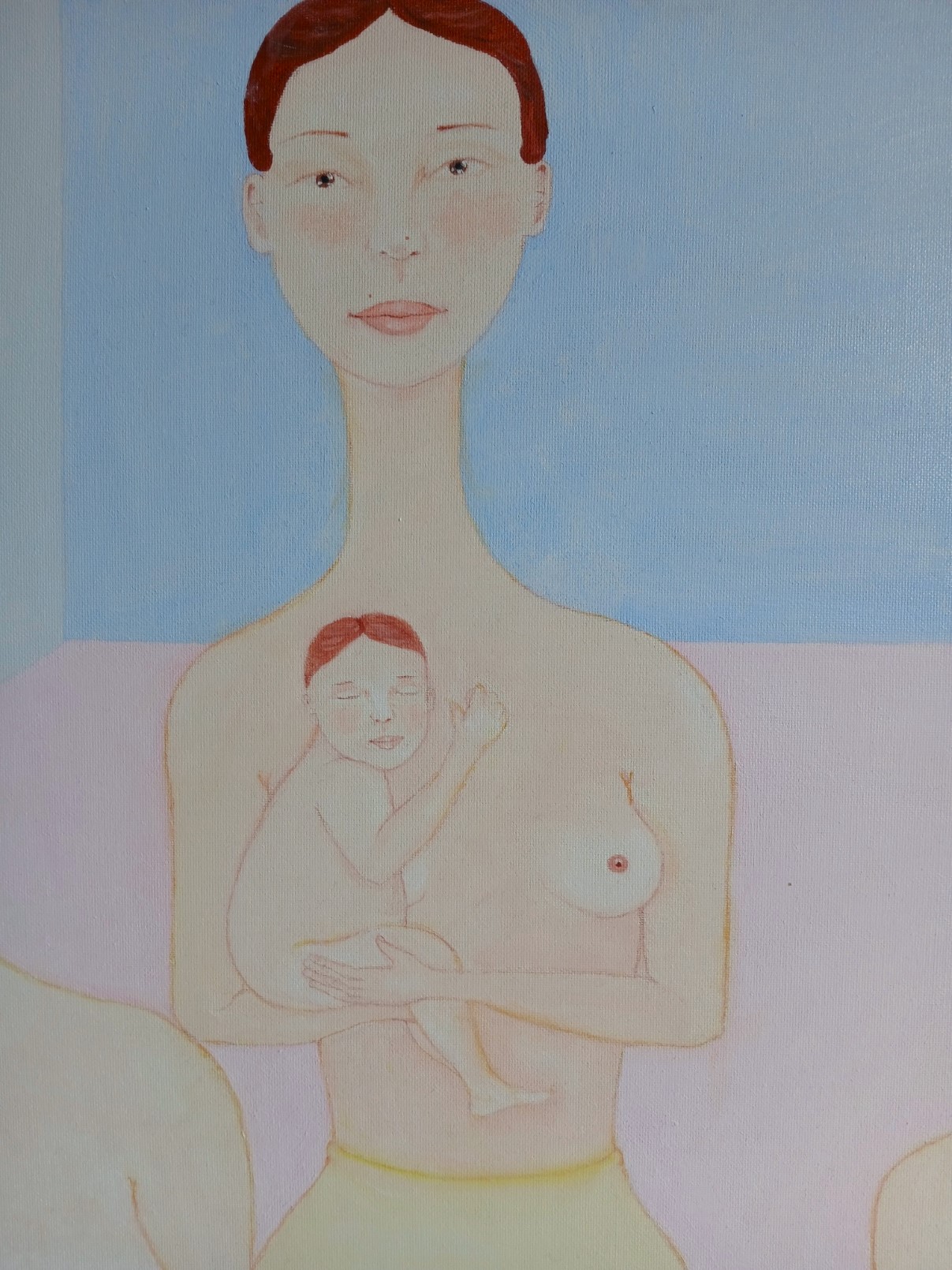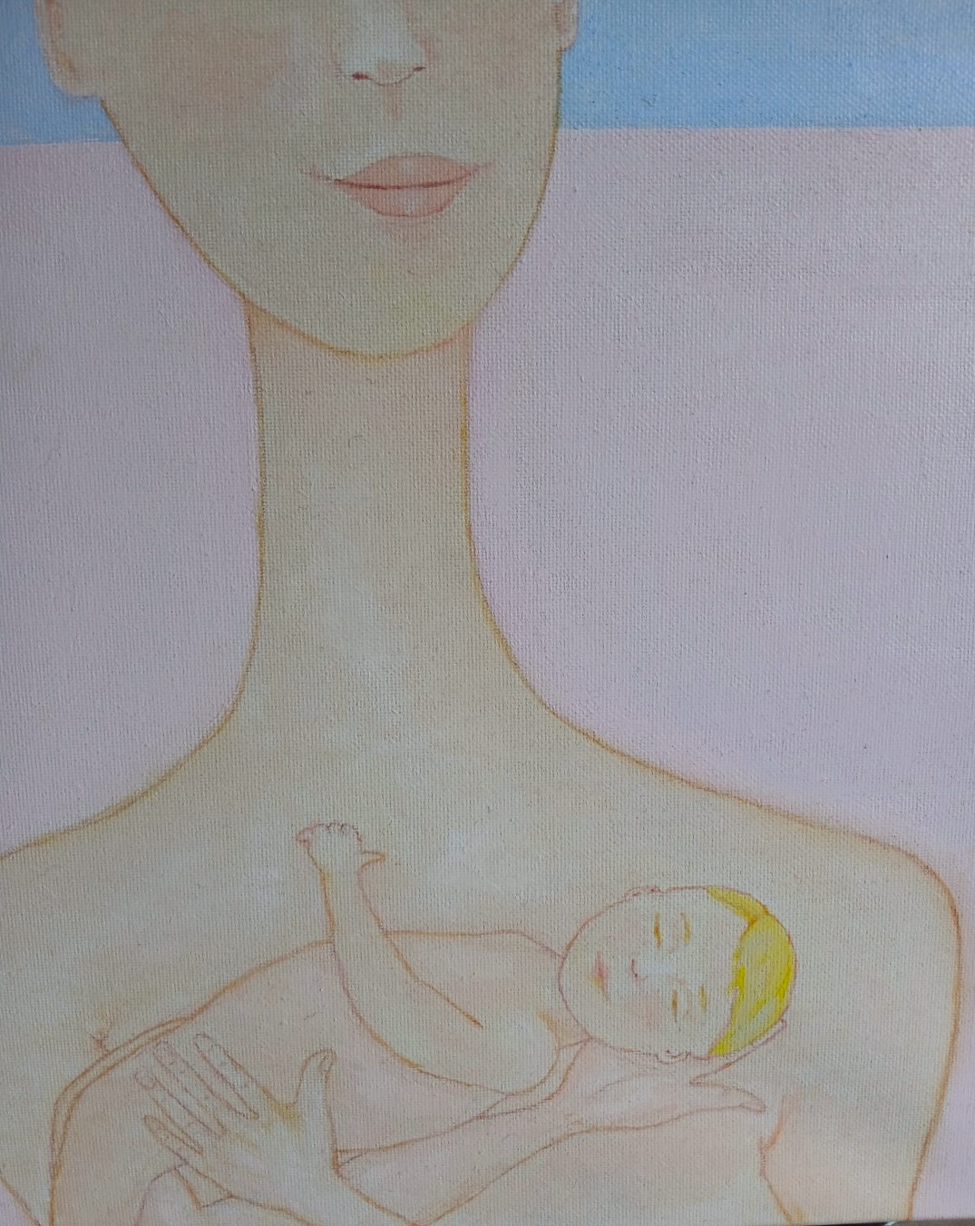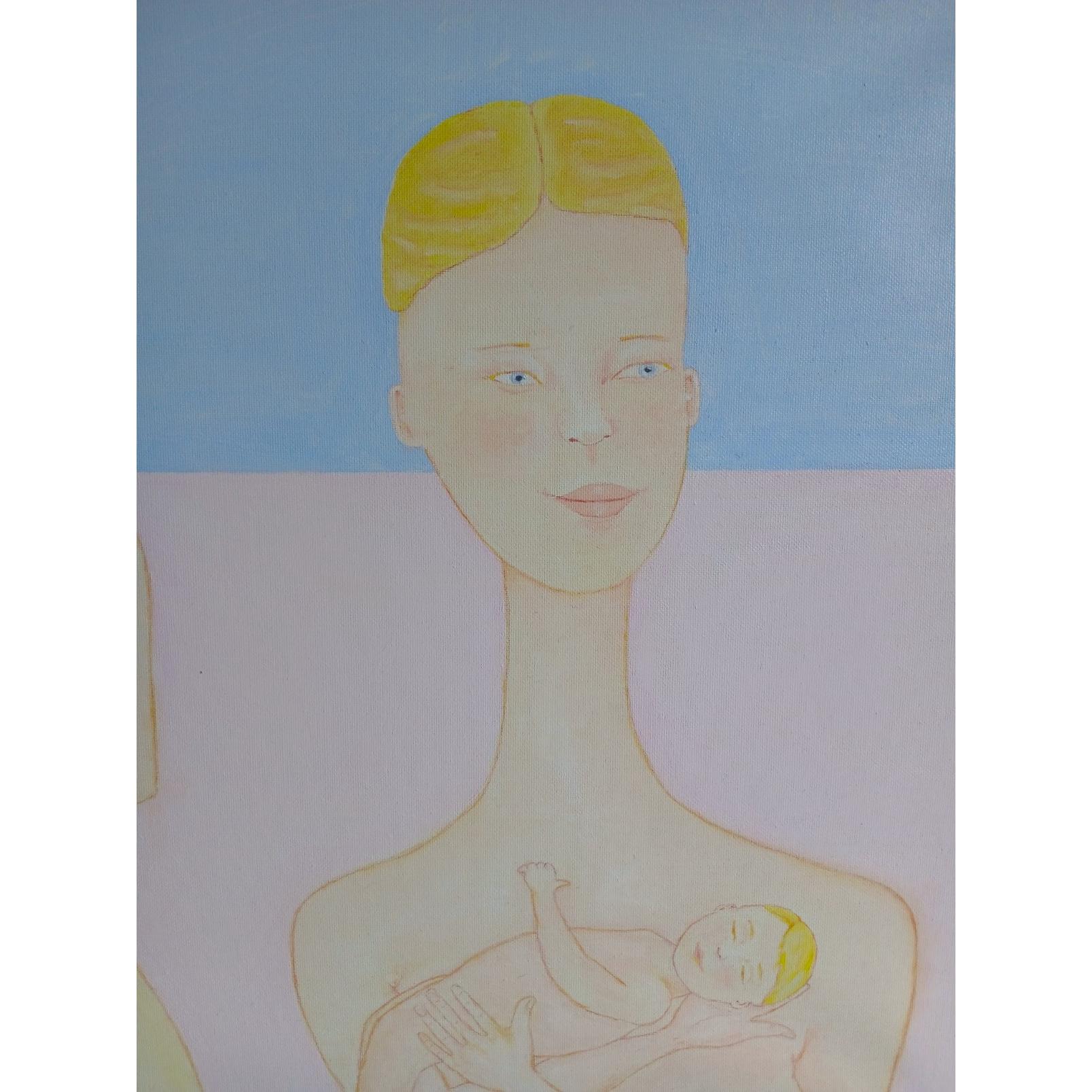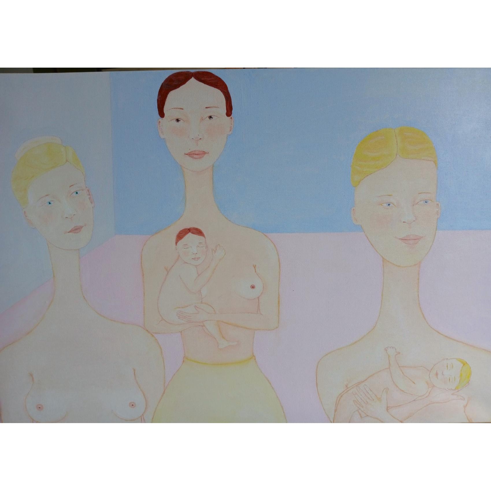 L'opera rappresenta mamme che hanno da poco partorito, due delle quali con il bambino in braccio. Una mamma osserva, forse è ancora in attesa. Esse sono nella sala femminile a loro dedicata, per le neopartorienti. La scena si svolge sempre sul pianeta AI, distante anni luce da noi nella galassia Andromeda, abitato da esseri femminili e da rari esseri maschili. Sono illuminati, puri, sapienti e privi della conoscenza e dell'esperienza del male, che tormenta la terra.