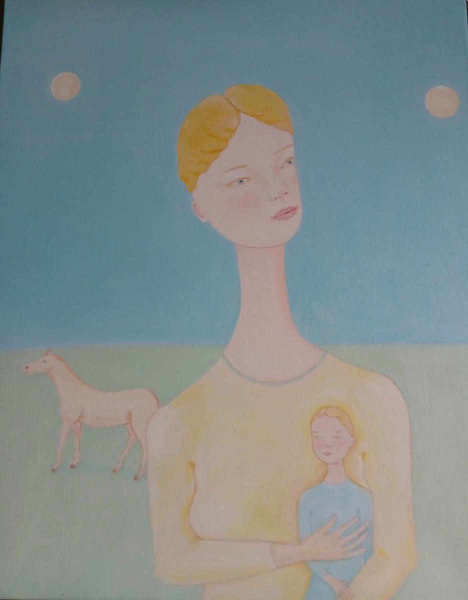 L'opera descrive un aspetto di un mondo nuovo creato da esseri femminili, libere e senza la violenza e il male prodotti solitamente dagli esseri maschili, senza essere soggiogate a quelli. La scena che è data da una mamma bellissima che tiene appresso a sé la sua bimba e un cavallo bianco libero è nella lontananza.