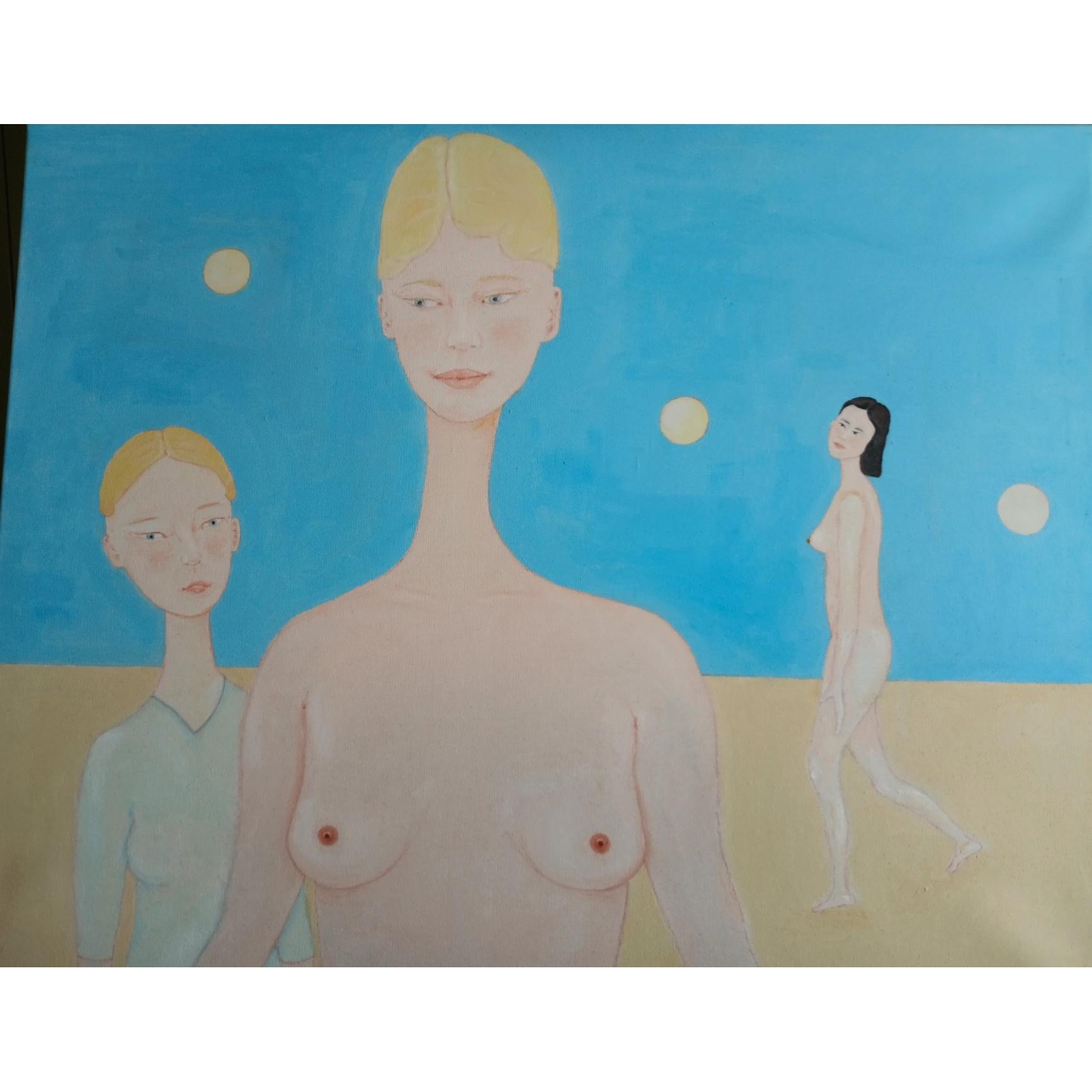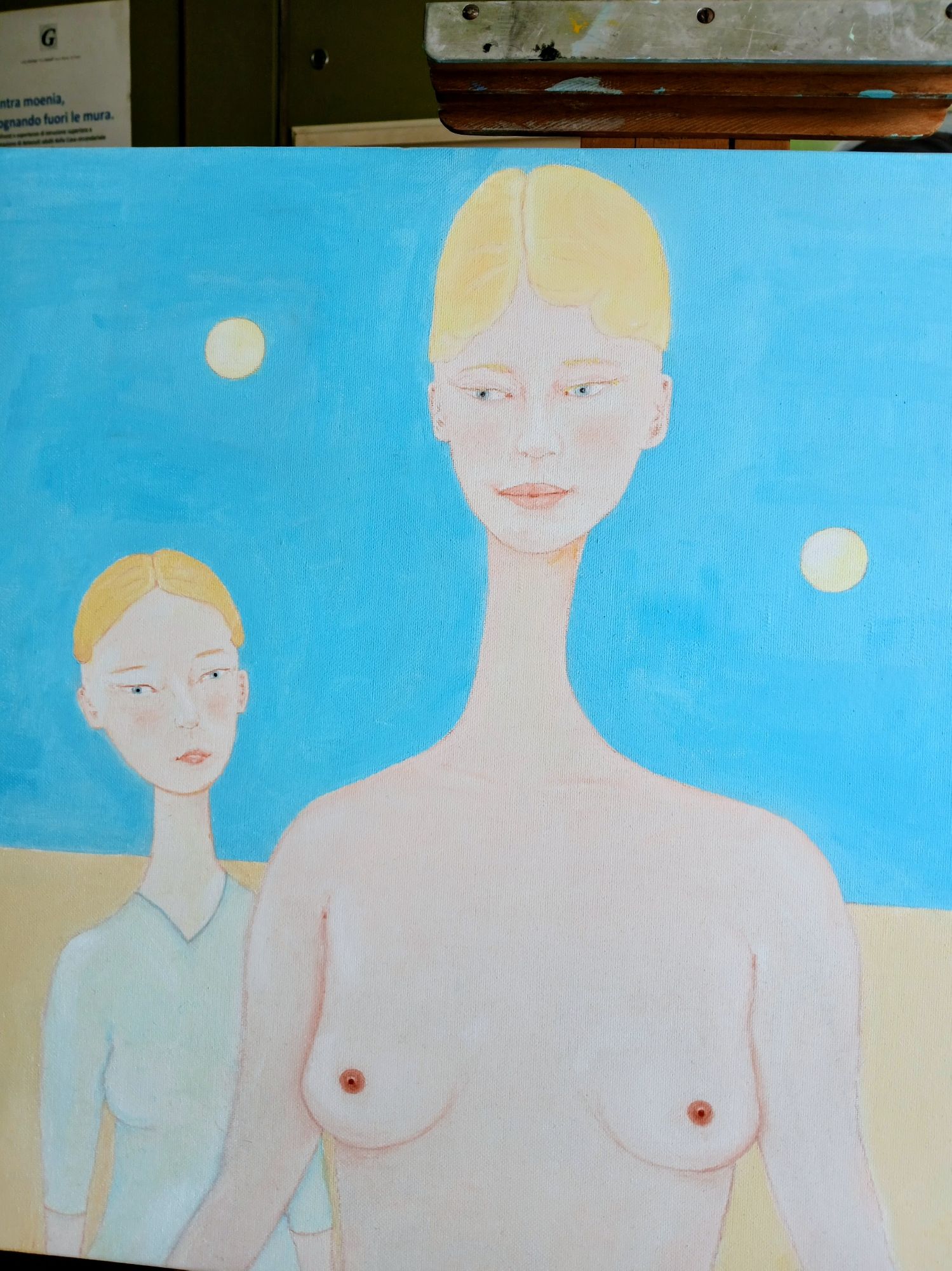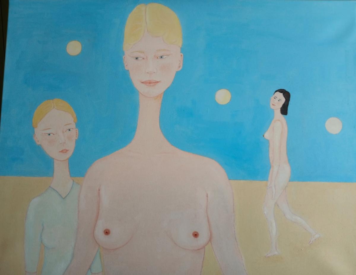 A dark-haired earthly japanese woman meets two female beings on planet A1 in the sky of the Andromeda Galaxy thanks to an entanglement with them; she sees how they are superior, pure, and delicate; but untouchable. Their purity indicates to her the way of life to follow on Earth. The name of eathly woman is Ayu. Ayu traveled through space-time with the mediation of the art, to meet two female beings from Andromeda, a mother and daughter.