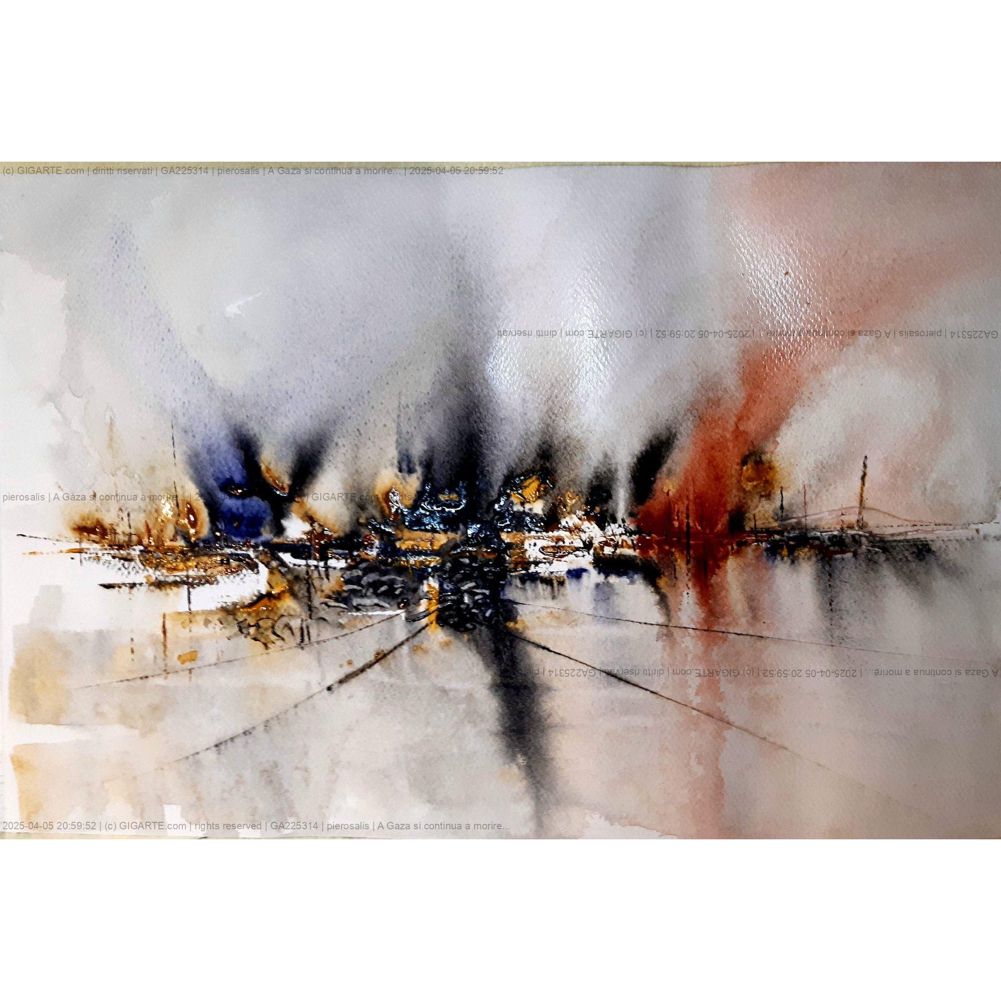 Si certifica che l'artista Piero Sails sabato 5 aprile 2025 ha archiviato la foto dell'opera GA225314 dal titolo "A Gaza si continua a morire..."