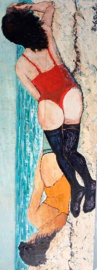 Il pensiero si alterna al riposo (acrilici su tavola dim. cm 130 x 50)