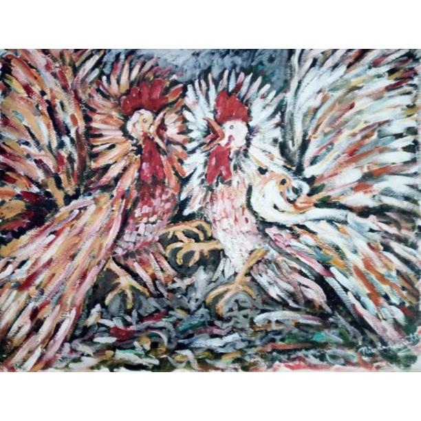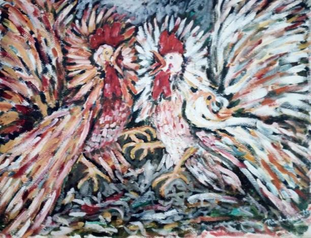 Il salto dei galli sbattendo le ali sprigionava colore (olio su tela dim.40x50 cm)