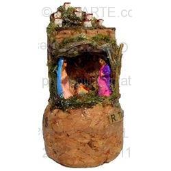 Tappo di champagne, vino o spumante "classico" scavato nel mezzo per costruire la grotta della natività; il paesino è situato sulla parte superiore per dare un effetto lontananza.