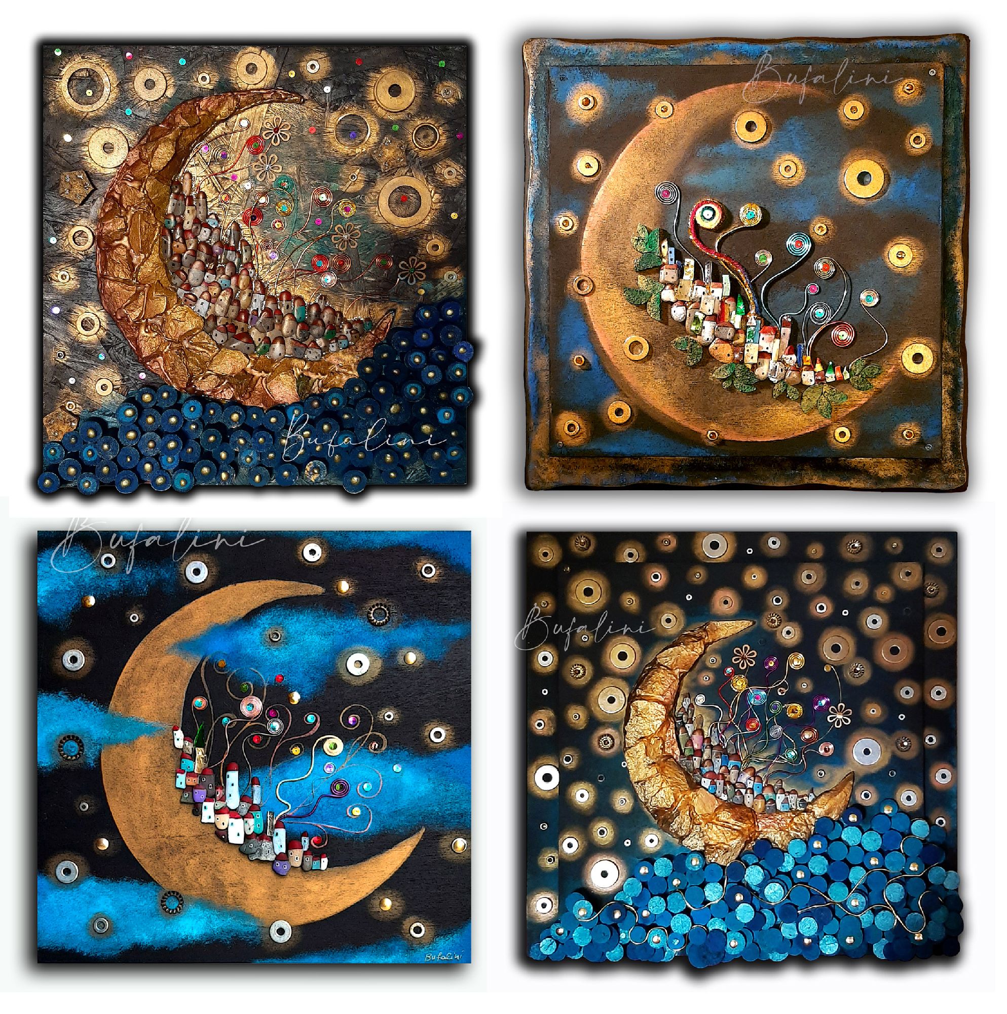 Ecco un'altra mia luna, questa volta realizzata mediante assemblaggio di cortecce e pietre, i sassi compongono invece la città, accessori in rame e metallo per le stelle e le luci..il prezzo indicato è indicativo, ogni luna ha il suo percorso, i suoi dettagli la sua dimensione