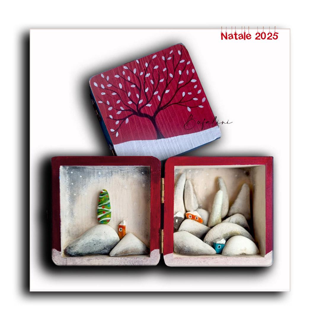 Scatoline "natalizie" con paesaggi innevati creati assemblando piccoli sassi e schegge di pietra
