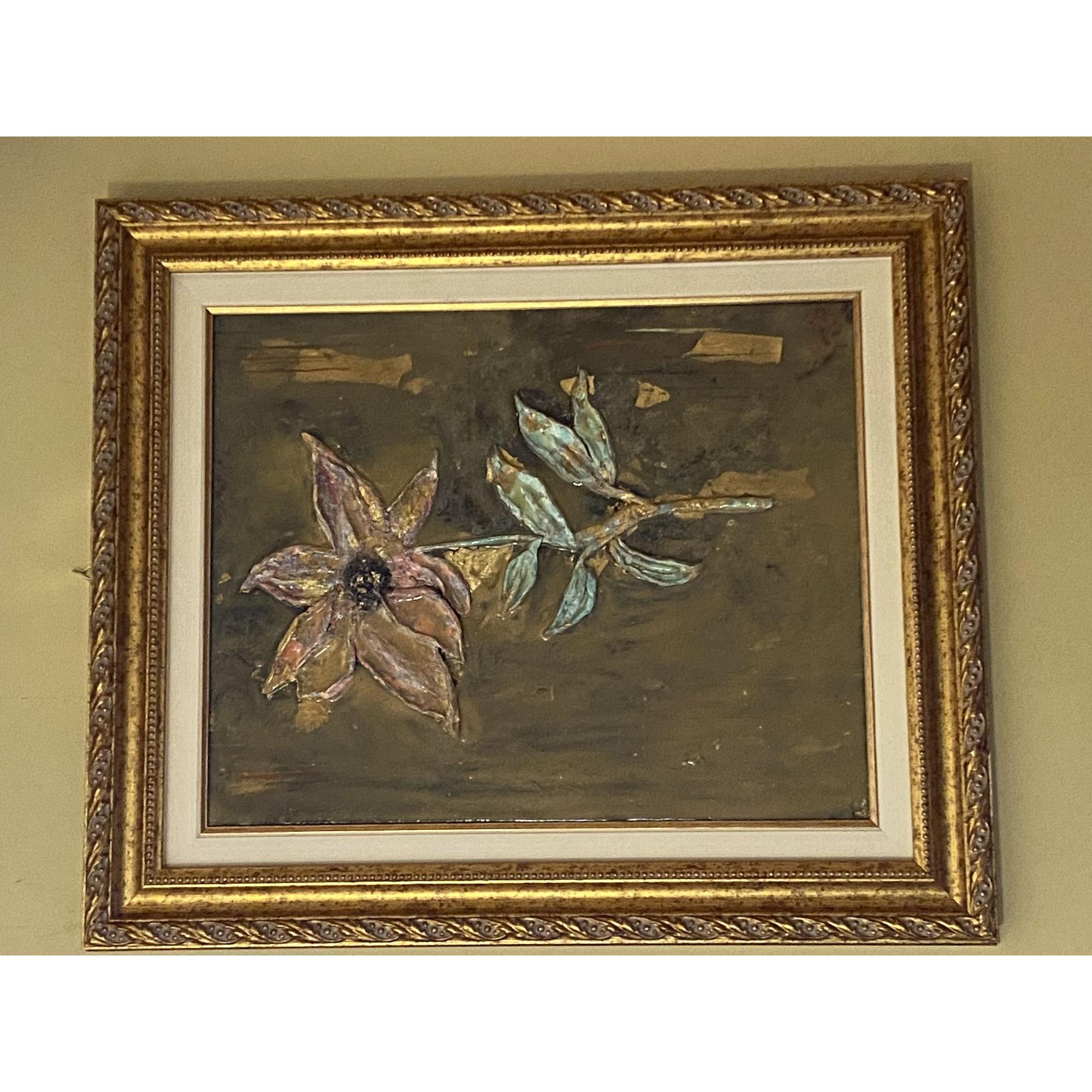 Il fiore è realizzato con pasta modellabile, fissato su tela, colori acrilici, fissato con la resina epossidica