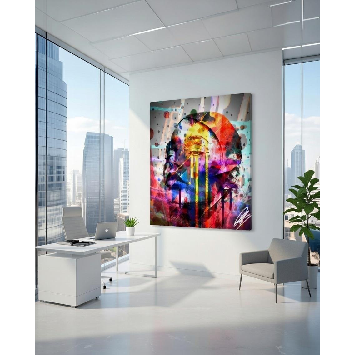 L’opera è un’esplosione di emozioni visive: un volto femminile stilizzato e frammentato emerge dal caos cromatico, dominato da un occhio ipnotico e vulnerabile che versa lacrime fluide e luminose in tonalità acide di giallo-verde, mentre colature vivaci si intrecciano in un flusso dinamico. L’insieme evoca un pianto interiore catartico, una fusione tra dolore profondo e liberazione prismatica, dove il colore non decora ma sanguina come essenza dell’anima. Tecnica digitale pura, con texture stratificate e contrasti neon che trasmettono intensità psicologica e simbolica, tipica della tua ricerca su stati emotivi e fratture luminose.