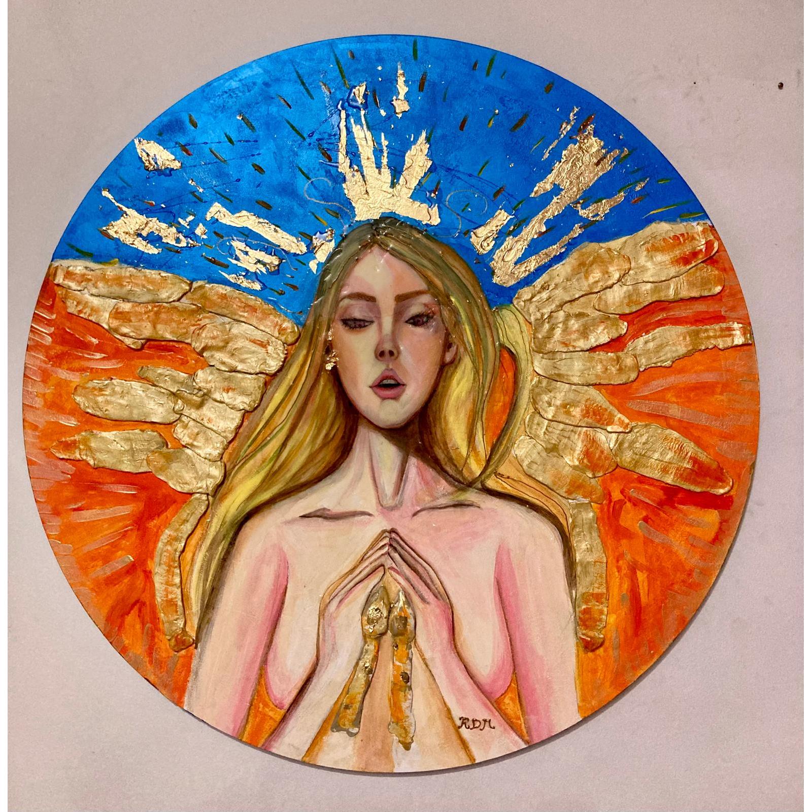 “Il fuoco della creazione” è un’opera che rappresenta Dio, fonte di energia primordiale, creatore di ogni cosa visibile e d invisibile, Spirito Santo indissolubile, che assume le sembianze di una donna, un angelo dalle ali dorate e infuocate, materna e amorevole. l’angelo crea due forme che si trovano tra le sue mani, attraverso la concentrazione con il pensiero, crea queste fiamme di amore ed energia che sono contrapposte, ma si appartengono, in quanto anime gemelle.