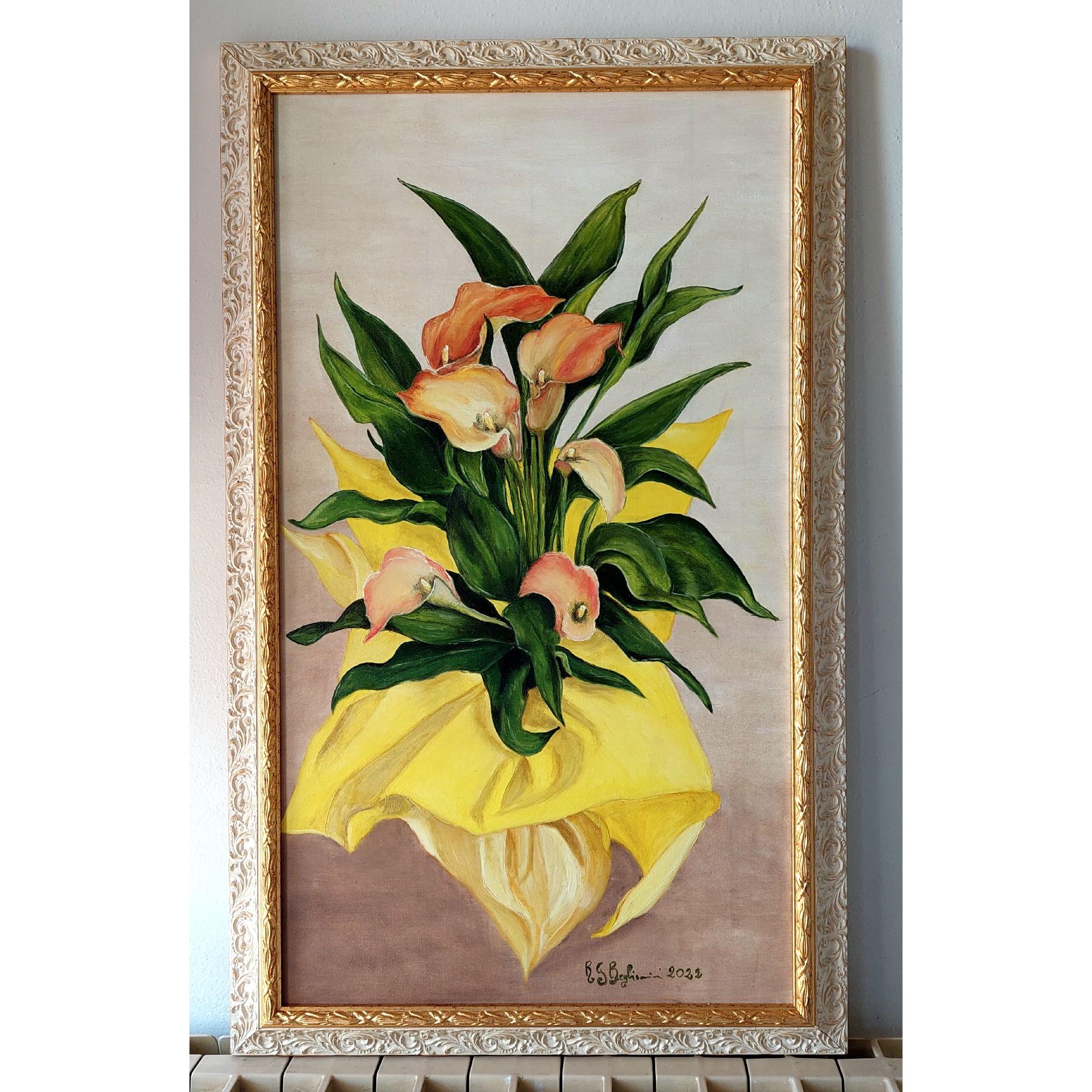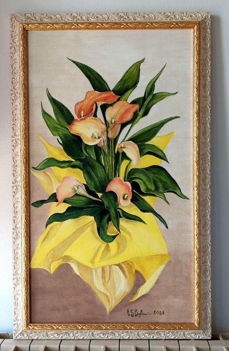 Bellissima composizione di calle effettuata dal fioraio e dipinta su commissione così come fattemi arrivare direttamente dall'acquirente !