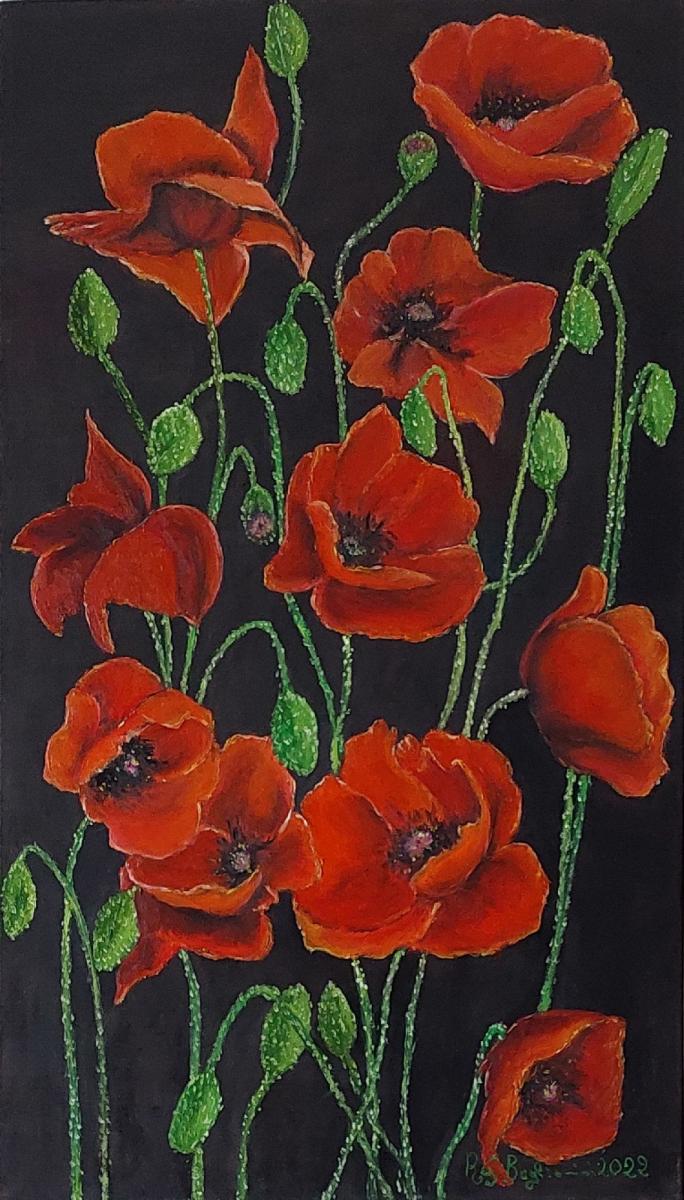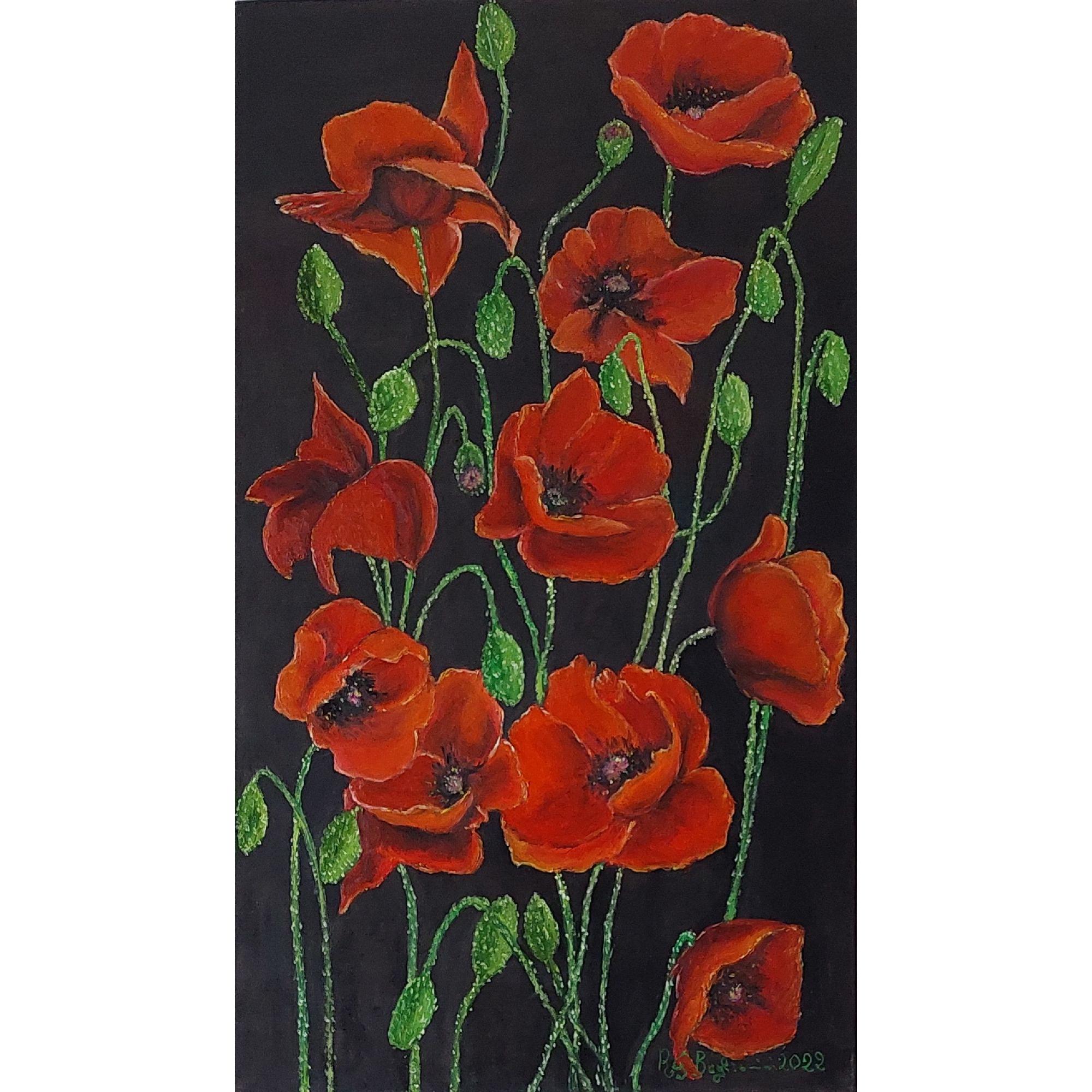Papaveri su fondo scuro, Opera unica realizzata a mano con tecnica olio su tela firmata dall'artista e munita di certificato di autenticità . Opera trattata con vernice finale di protezione agenti atmosferici Munita di cornice e gancio per essere appesa Per info inviare mail a : Begliomini19@gmail.com@gmail.com