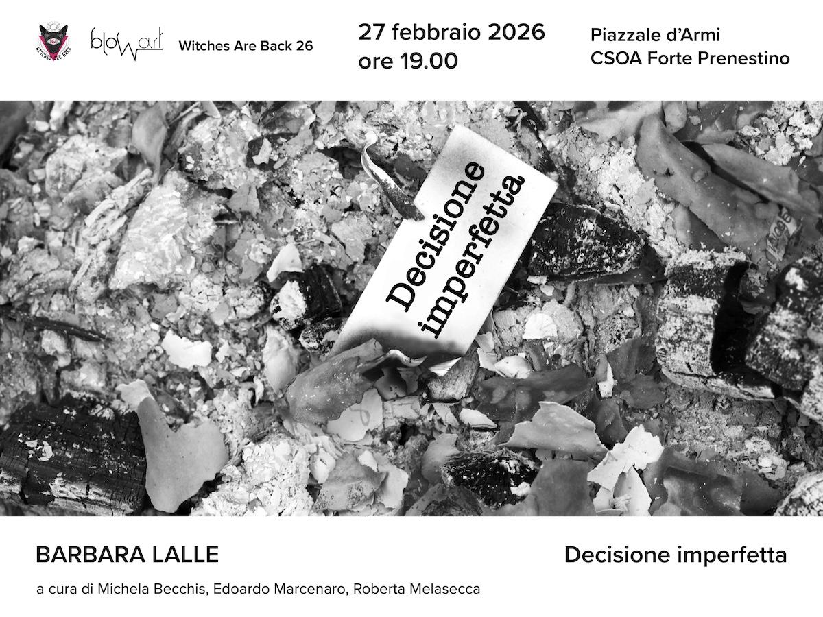Witches Are Back 2026?Decisione imperfetta ?Performance di Barbara Lalle ?a cura di Michela Becchis, Edoardo Marcenaro e Roberta Melasecca?27 gennaio 2026 ore 19.00?Piazzale d'Armi del CSOA Forte Prenestino | Via F. Delpino 187 - Roma